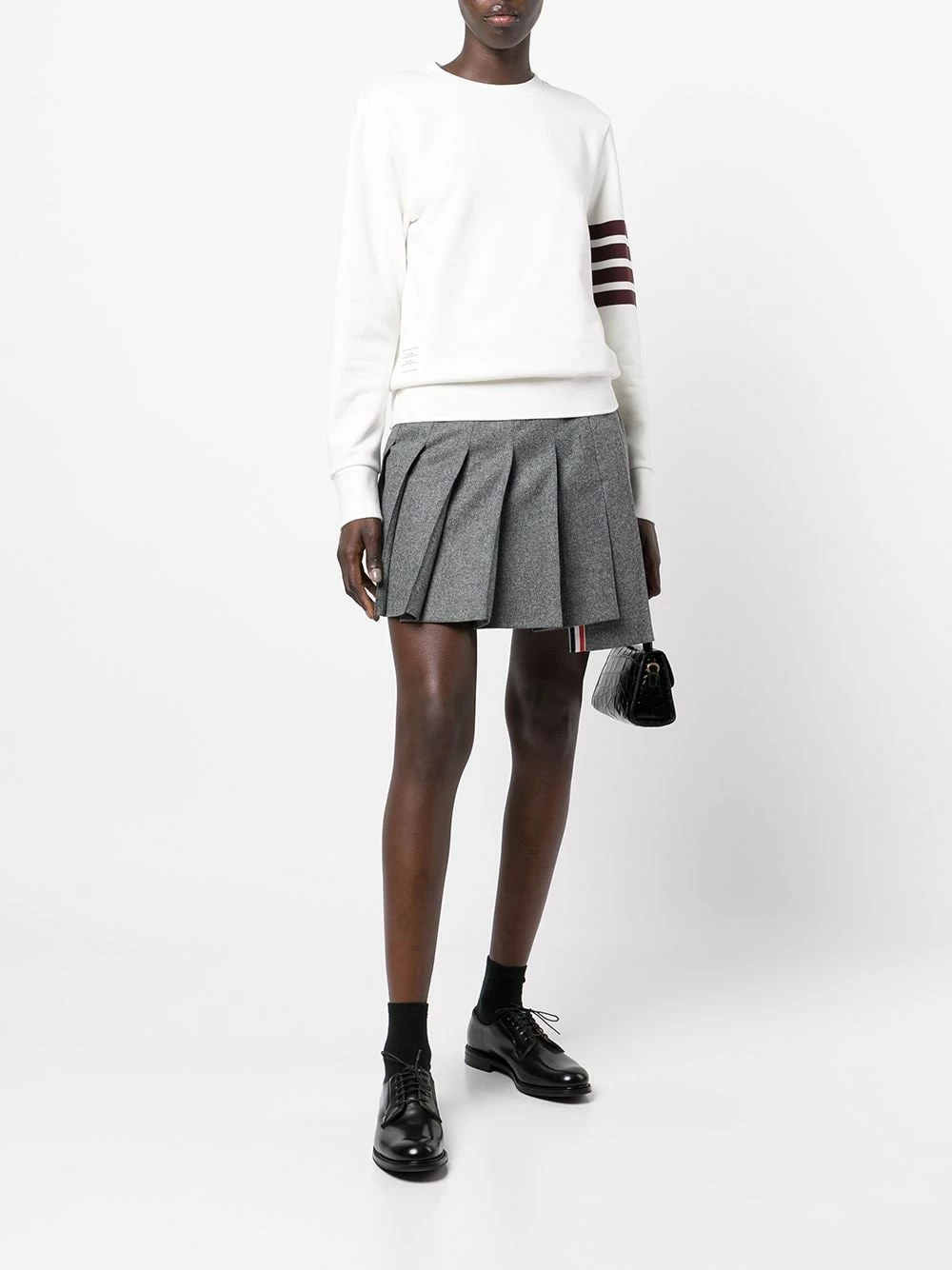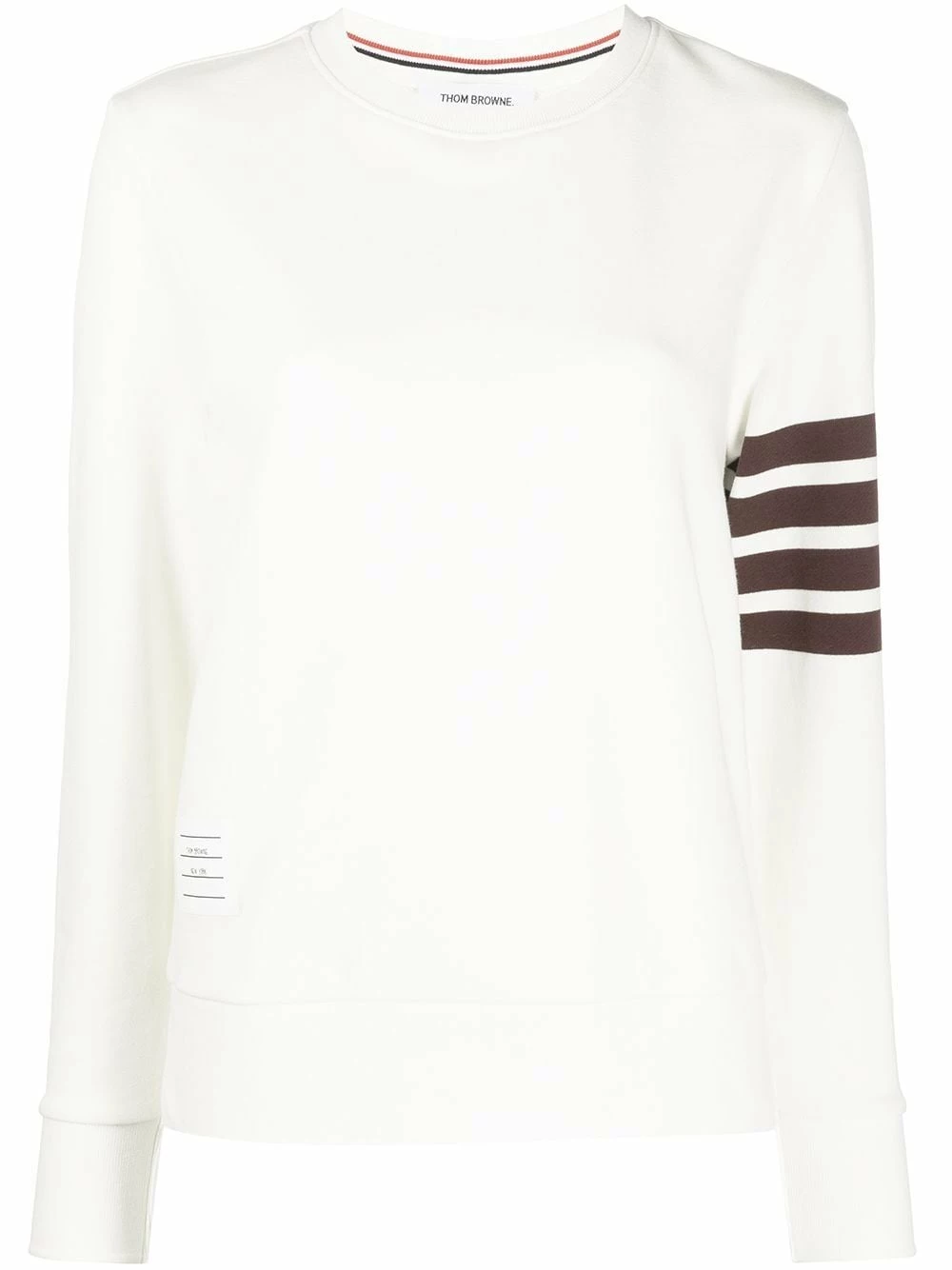 Thom Browne transforms the classic crew-neck silhouette by adding branding details that need no introduction. Crafted from white cotton and cut to a traditional crew-neck silhouette, this piece is adorned with the iconic 4-Bar motif at the left sleeve and the signature grosgrain loop tab at the rear.