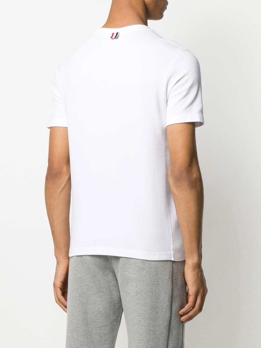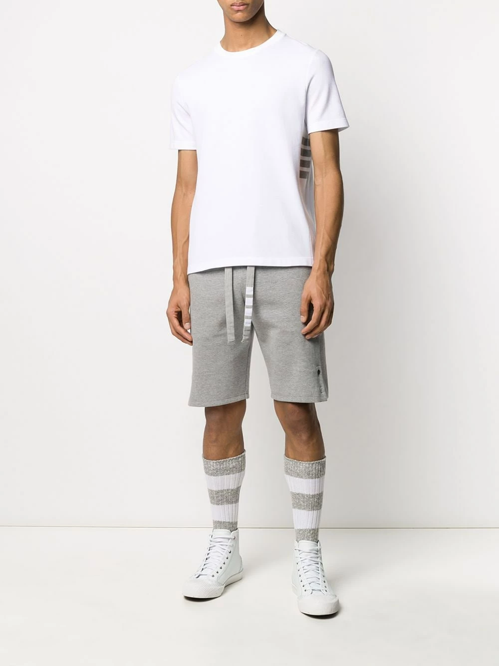 A classic white T-shirt gets an update here. Thom Browne’s signature 4-Bar stripe makes an appearance to the side of this piece, adding a quirky touch. The perfect laid-back look. Featuring a round neck, short sleeves, a striped pattern and a relaxed fit.