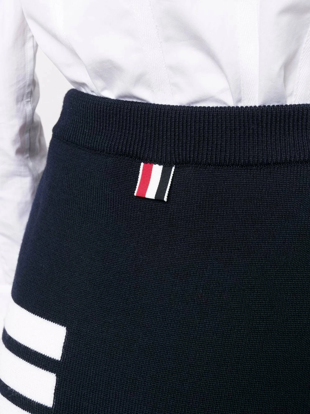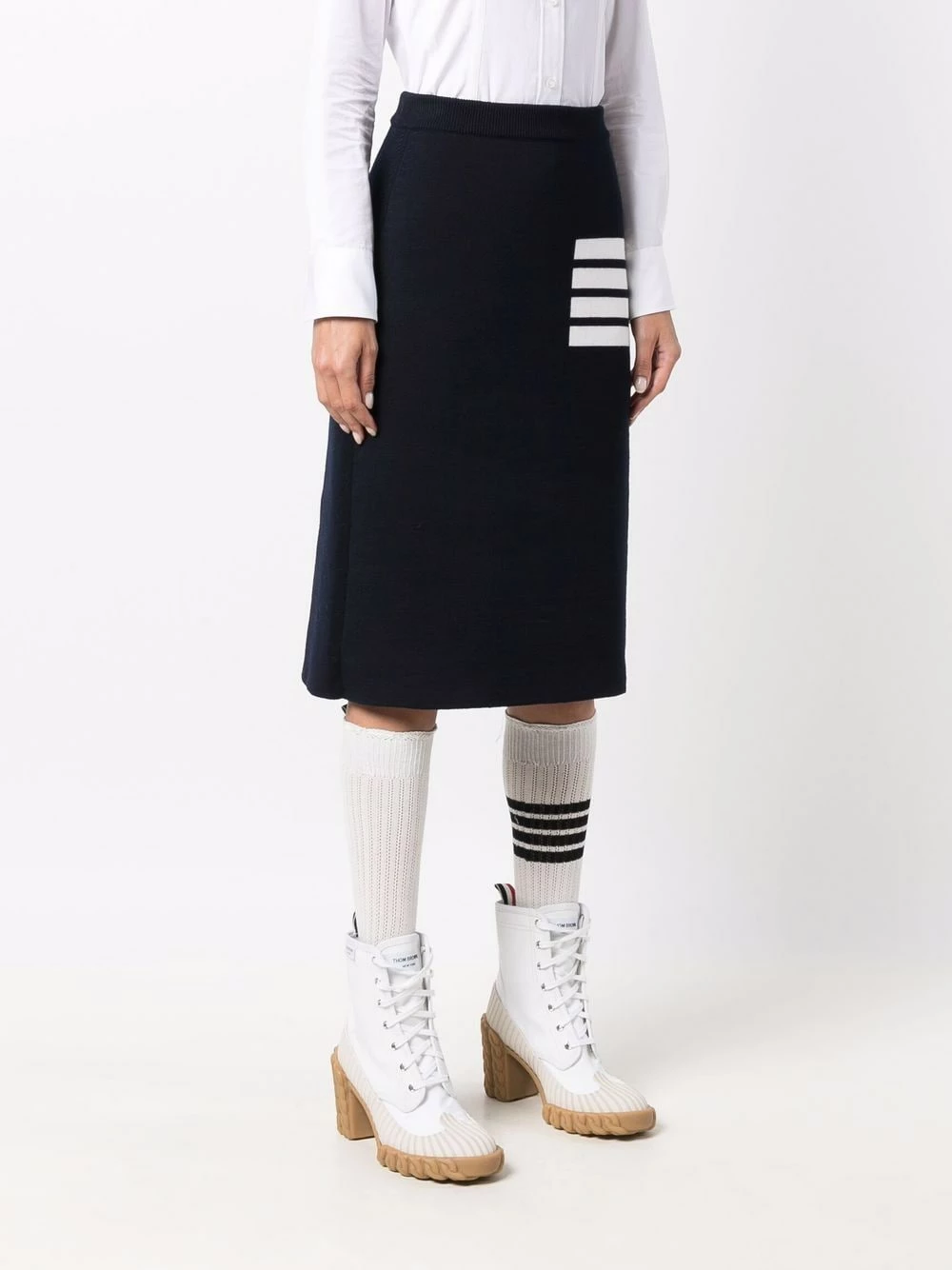Finished with 4-bar detailing on the side, this knee-length skirt is undoubtedly a Thom Browne design. Eschewing an official logo, the brand is recognisable by this motif.