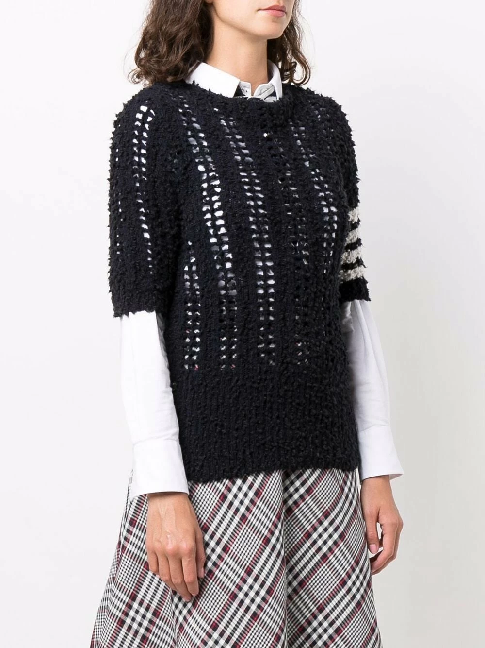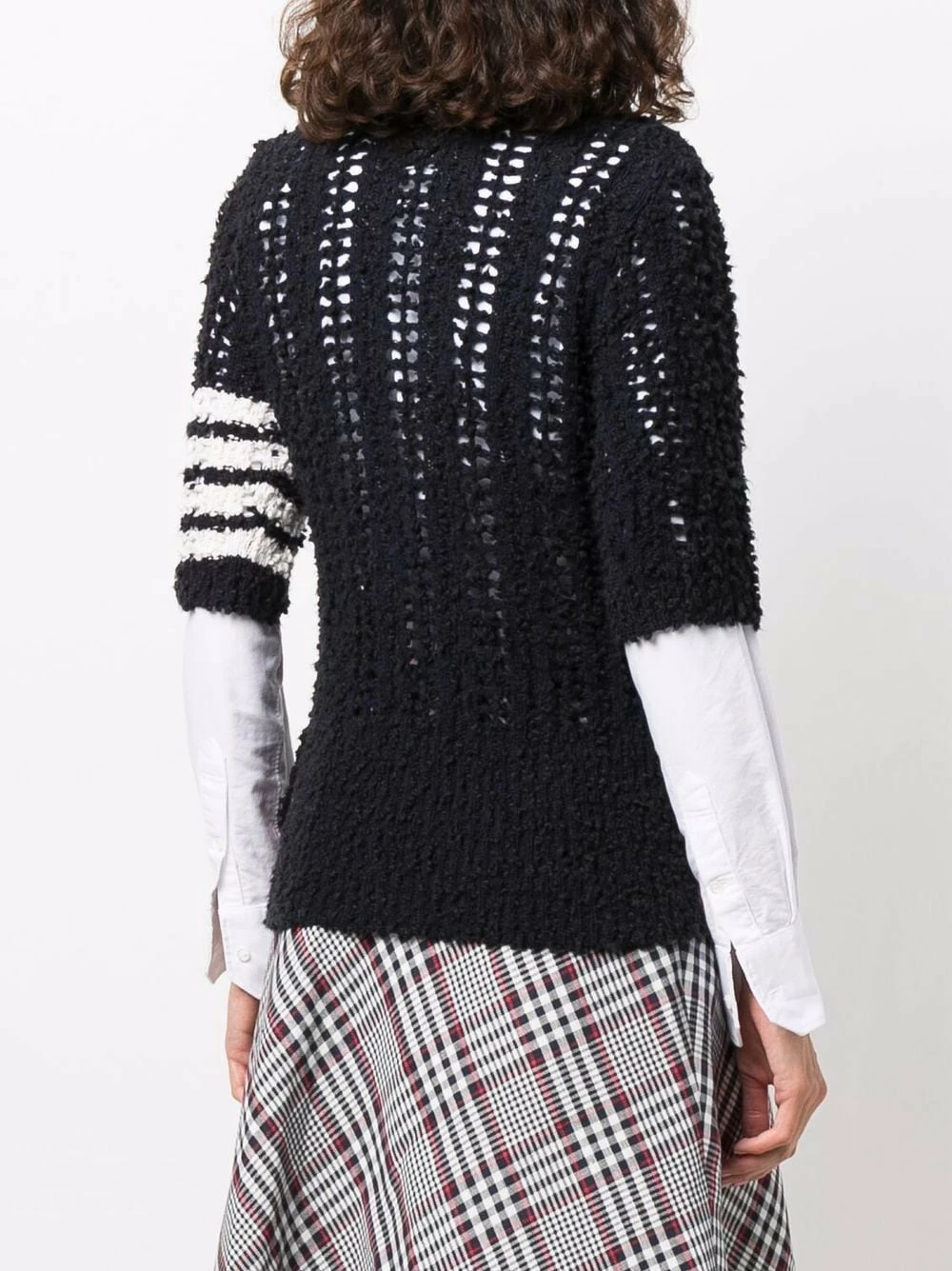 Since 2001, New York-based designer Thom Browne has radically changed the world of tailoring. Looking at each design with a contemporary edge, this knitted jumper from the SS22 collection is finished with the label’s signature 4-Bar logo along the sleeve for added charm.