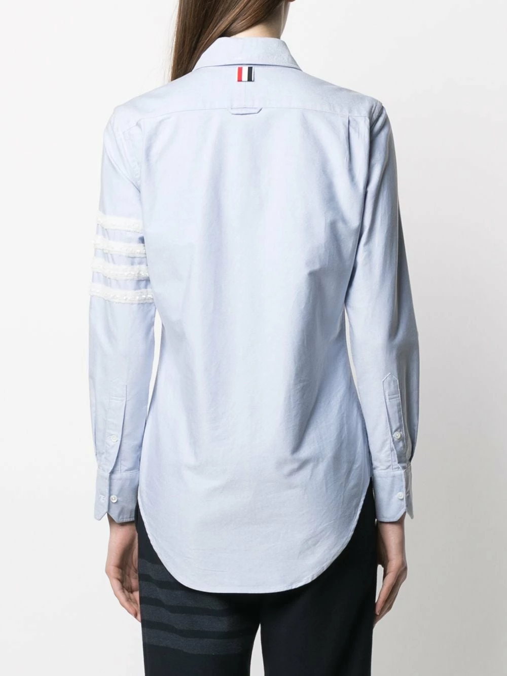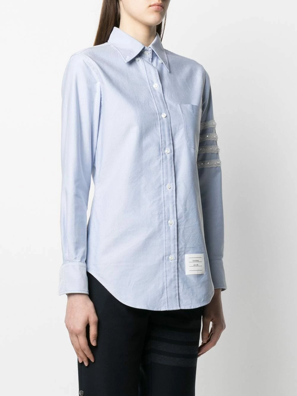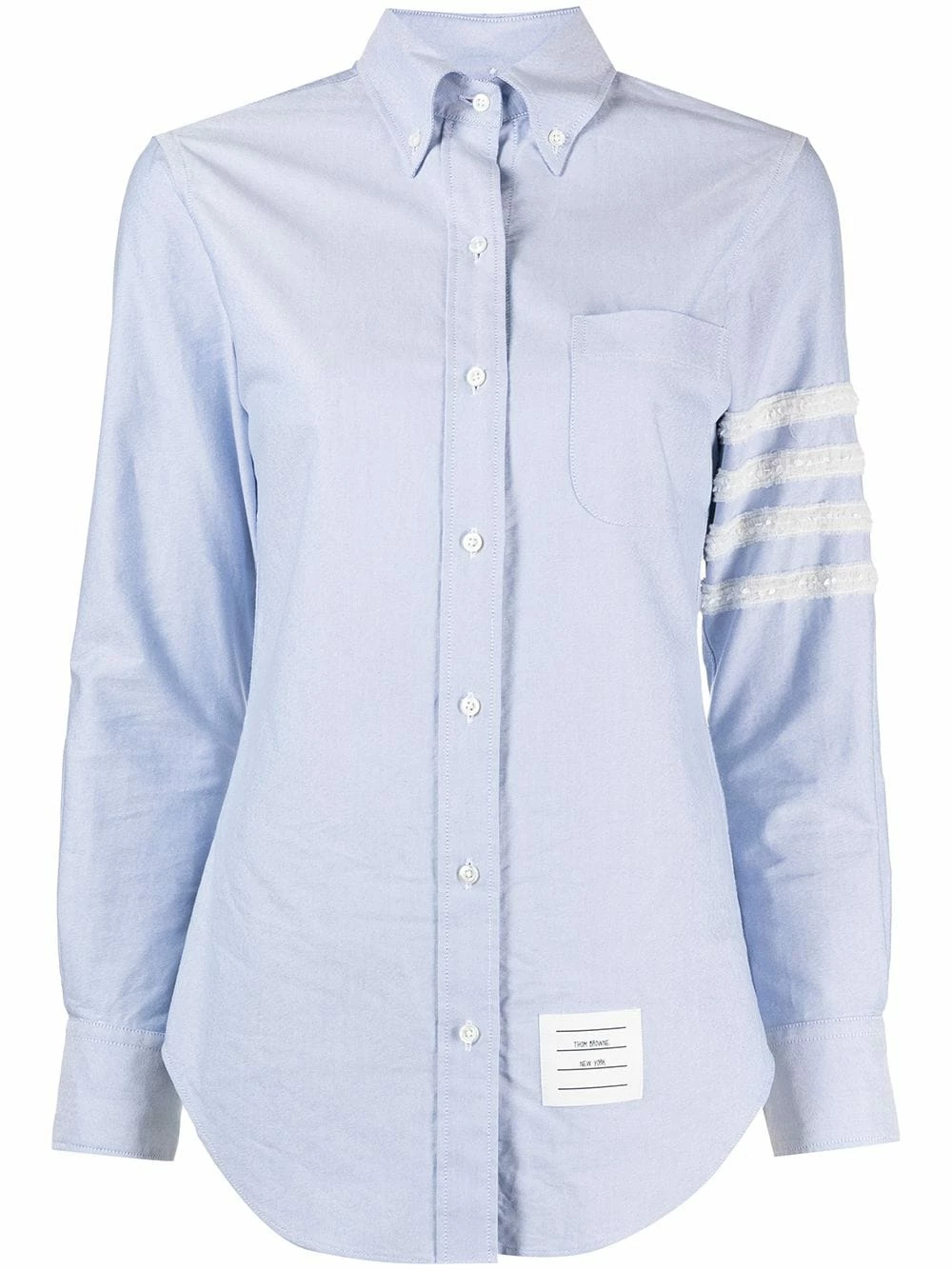 Keep your wardrobe looking smart and fresh. This light blue cotton button-down shirt from Thom Browne will ensure you’re the best-dressed in the room. That’s practically a guarantee.