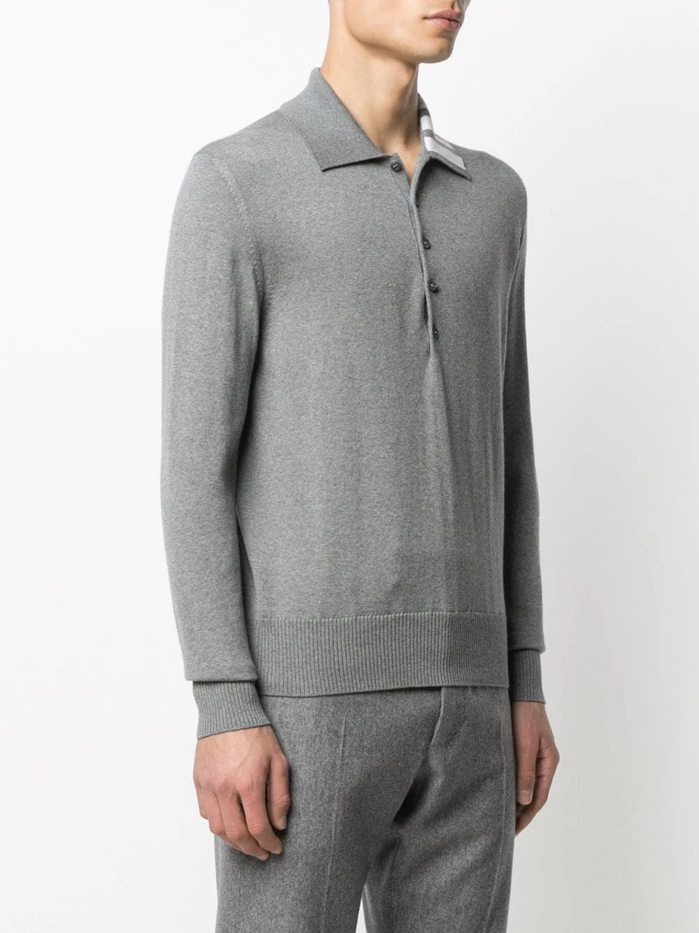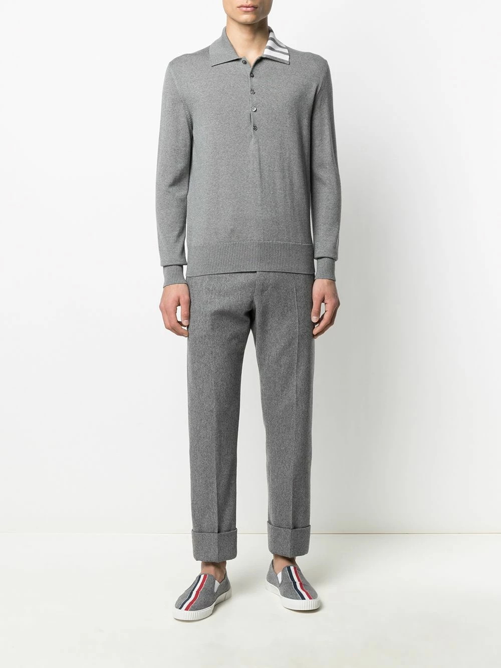 A keen eye for detail? Well, you’re bound to be tempted by the stripe detailing on the collar of this knitted Thom Browne polo shirt. And assuming you surround yourself with like-minded people, you can expect compliments.