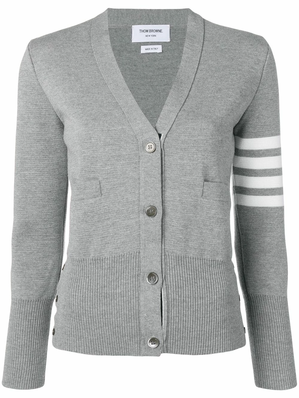 Thom Browne solves all your seasonal knitwear problems with this 4-Bar Milano stitch cardigan. Made from wool, this buttoned piece has been designed with the signature 4-Bar stripes and tricolour grosgrain trim. Perfect for wearing year in, year out.
