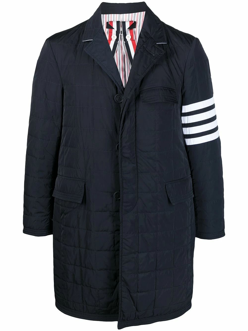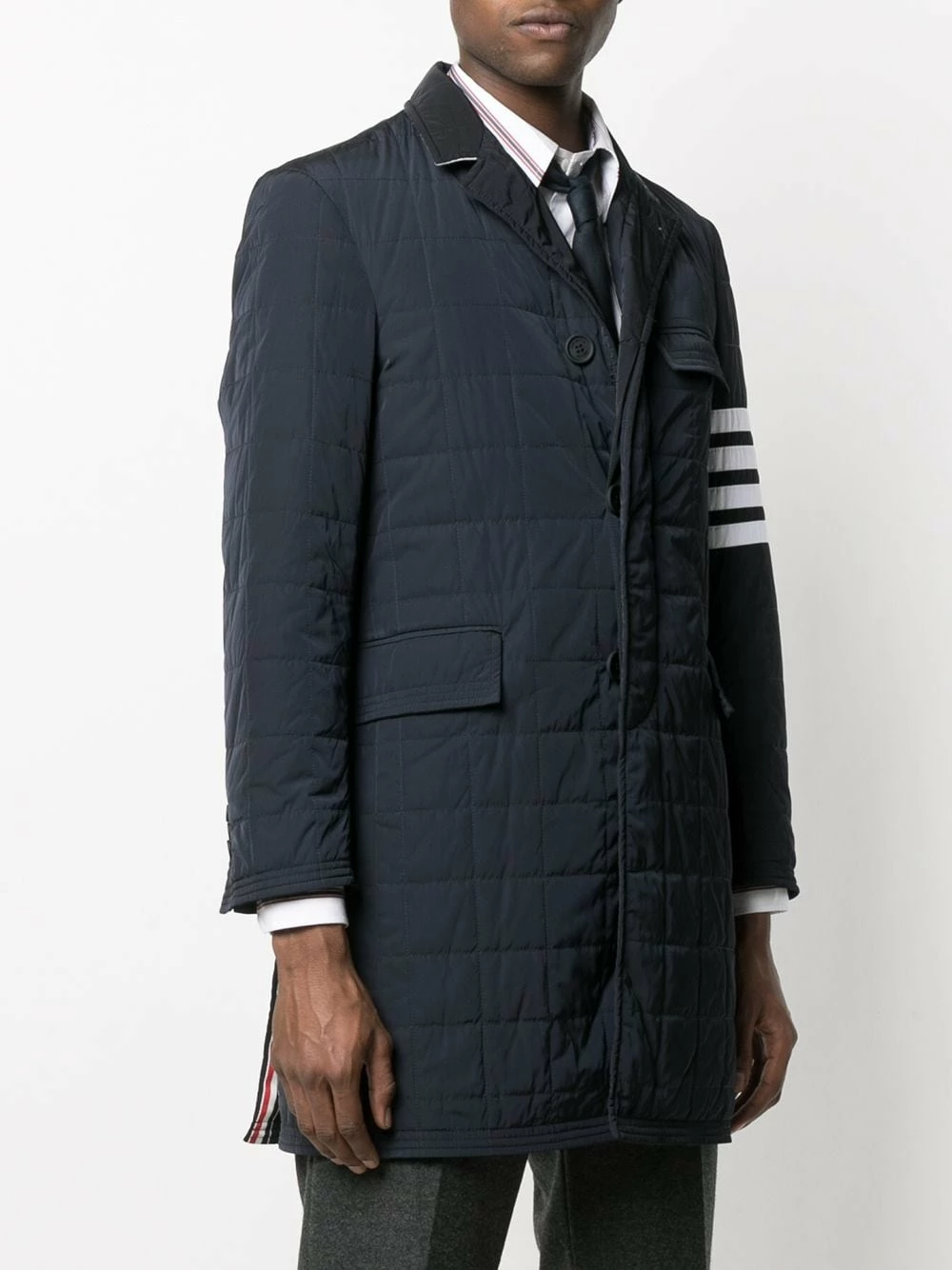 Indulge in a hyrbid. In a tailored cut but padded design, this jacket from Thom Browne benefits from the best of both worlds. Wrap up and remain dapper.
