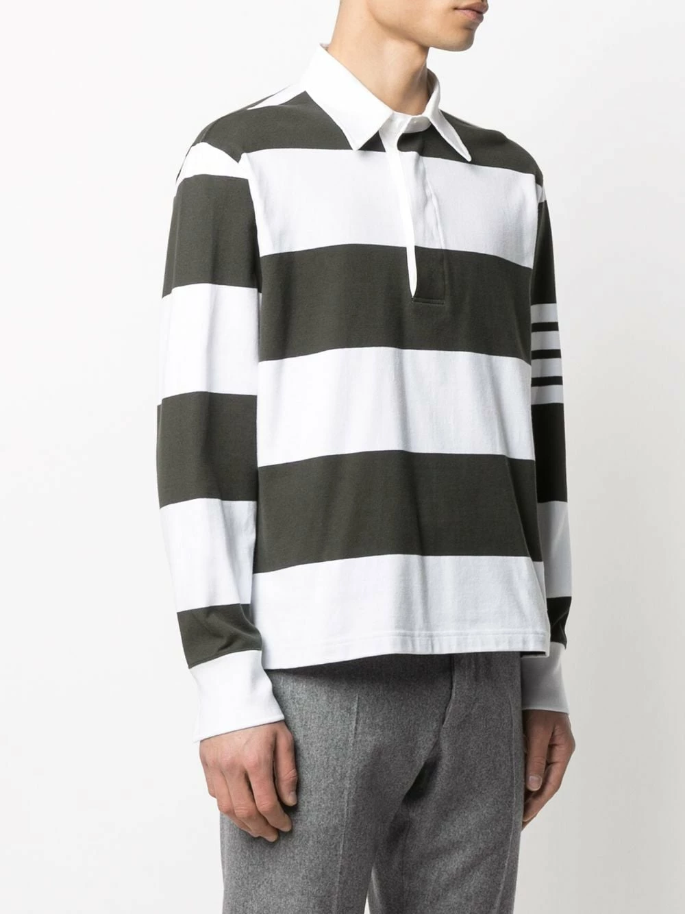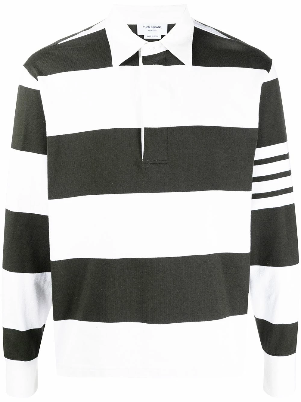 Sporty but stylish. In a striped pattern with a 4-Bar motif to one side, this long-sleeve polo shirt from Thom Browne imbues an athletic feel with style sewn in. Now that’s a homerun.