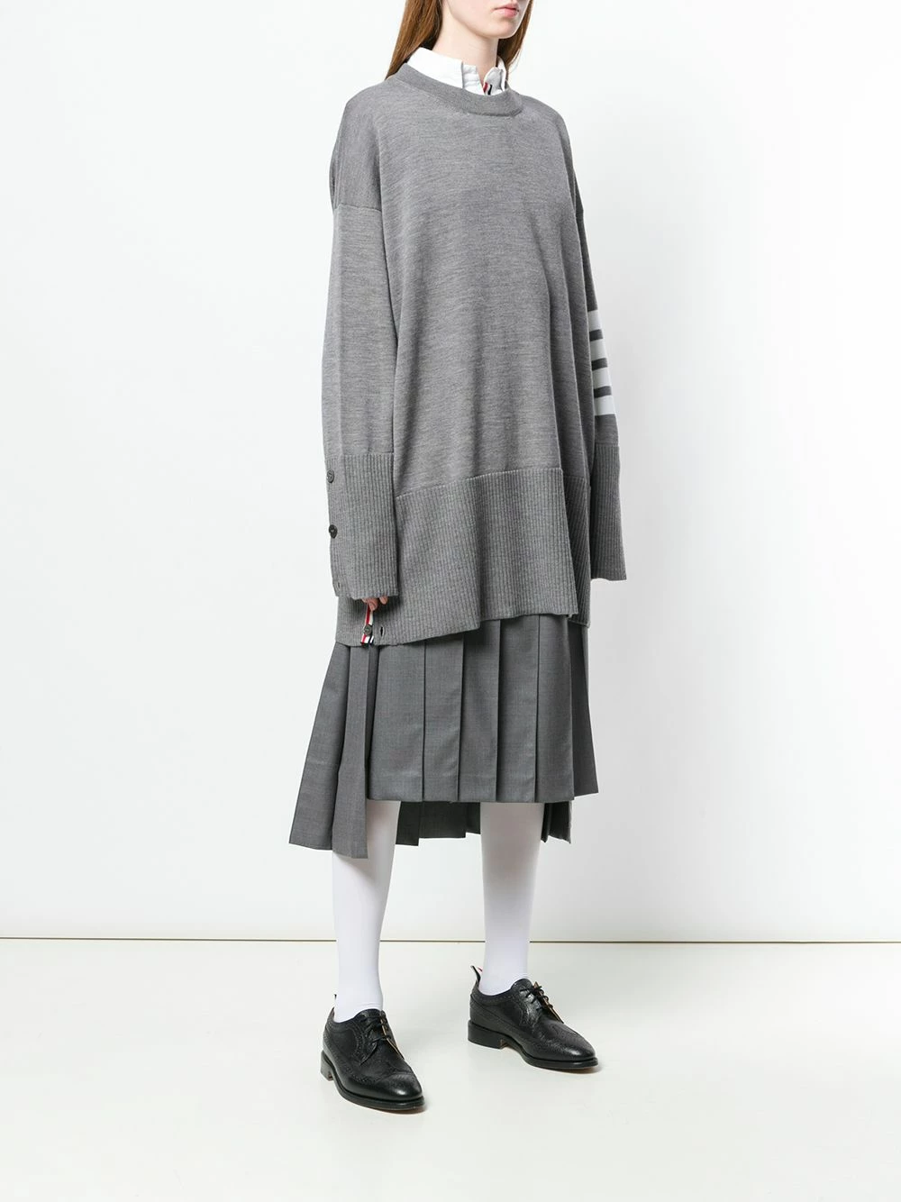 Oversize the jumper and you oversize the impact. Case in point…this 4-Bar stripe piece from Thom Browne. Maximum style.