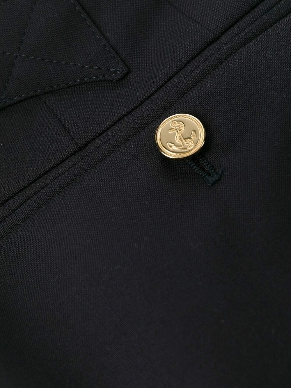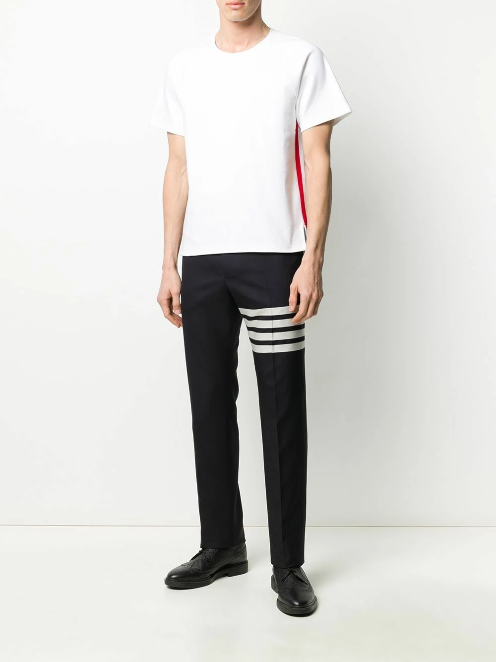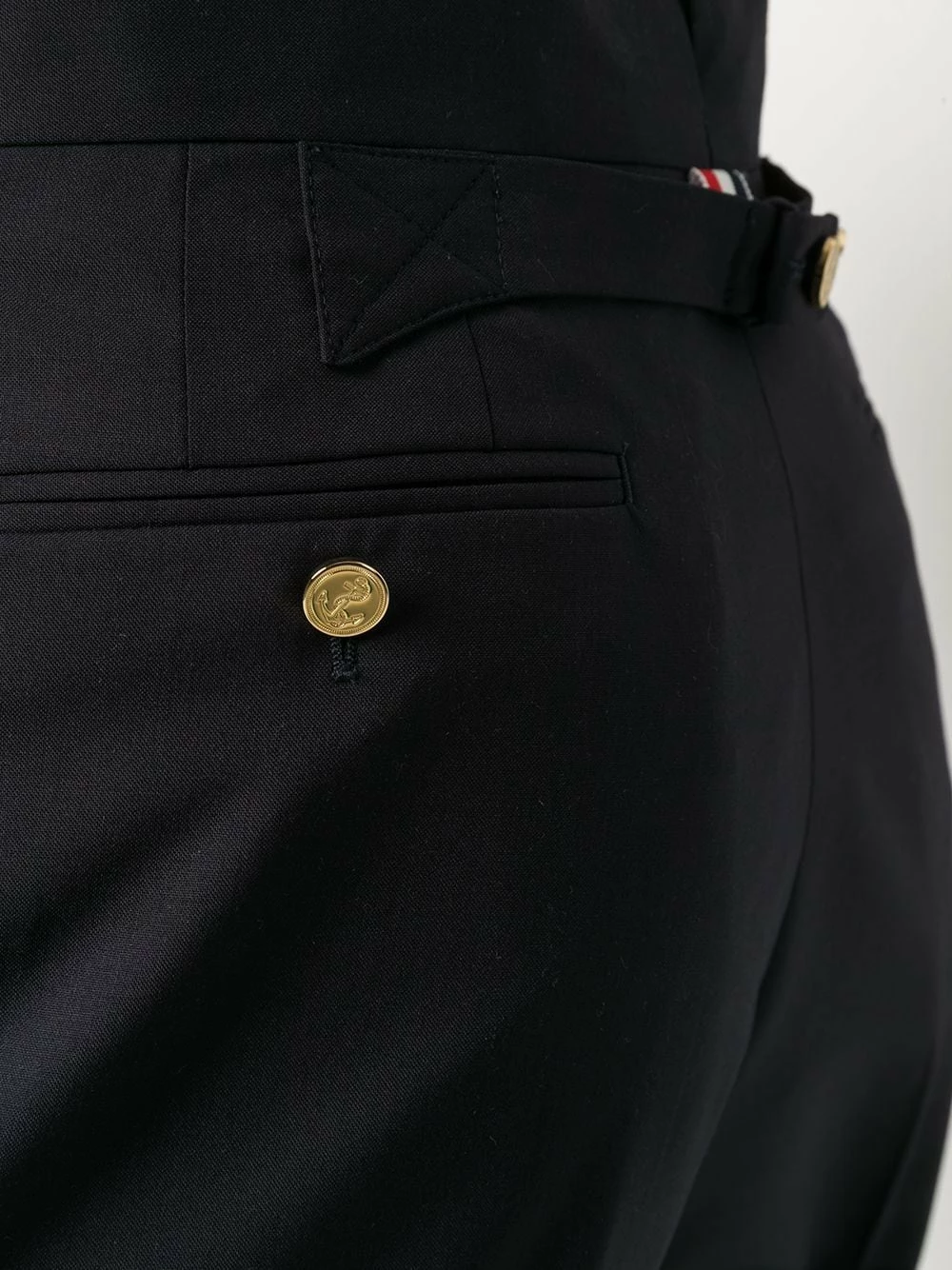 Time is too valuable for you to waste it stressing about what to wear to the office tomorrow. Thom Browne makes the decision quick and easy with these navy plain weave suiting 4-bar trousers. One less thing to worry about. Featuring a concealed front fastening, side pockets, rear welt pockets and a signature four-bar detail.