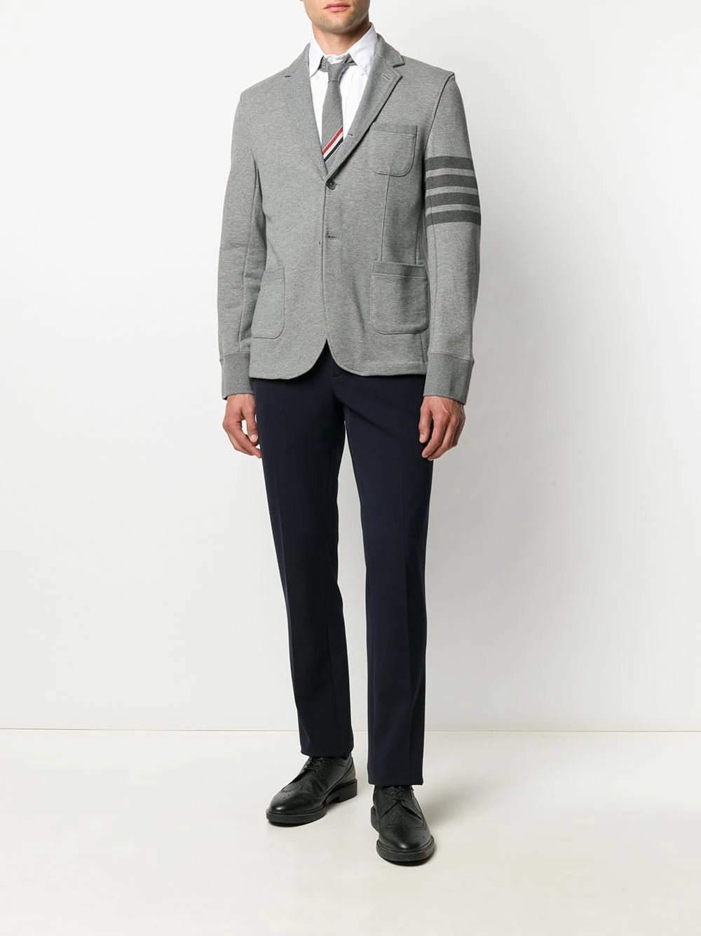 Looking to embrace your sophisticated side? Look no further than this 4-Bar stripe blazer from Thom Browne. Feel your confidence levels rise.