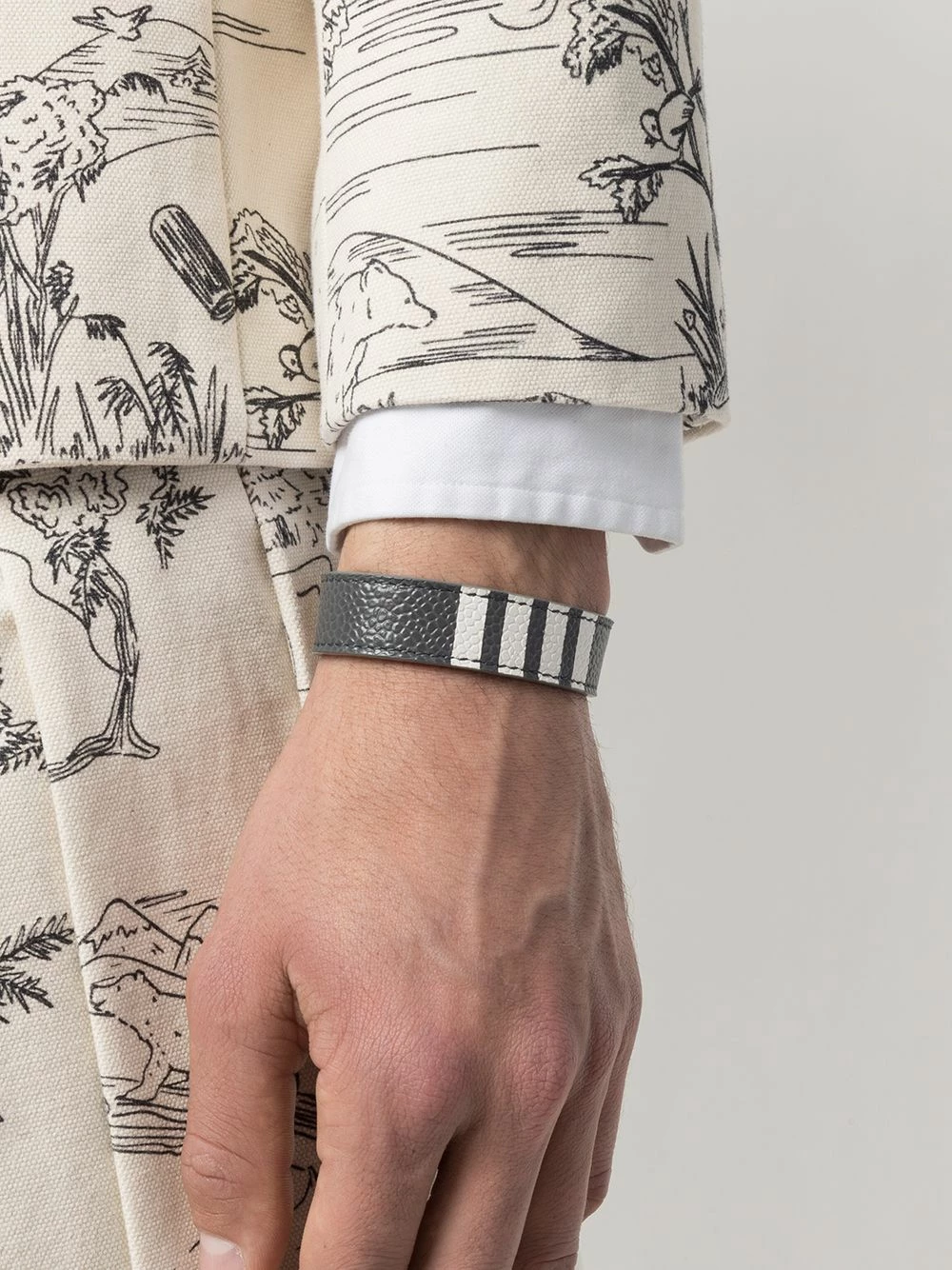 All you need is less. Constructed from calf leather, this 4-Bar stripe bracelet from Thom Browne is enough to elevate your looks. Simple is key.