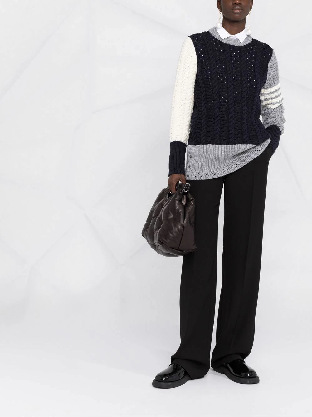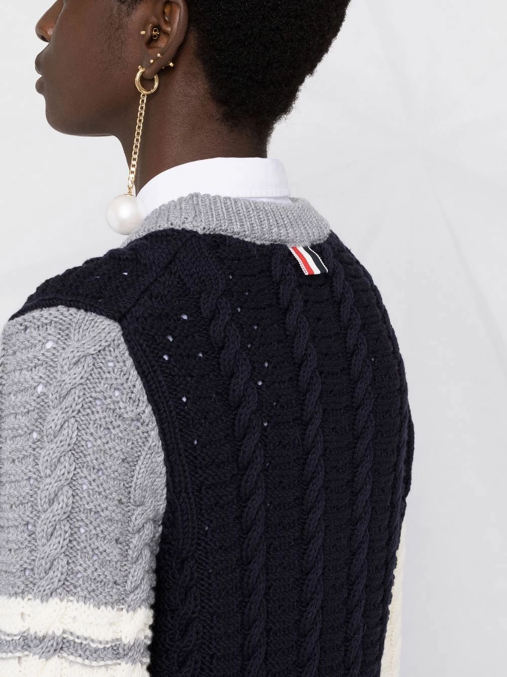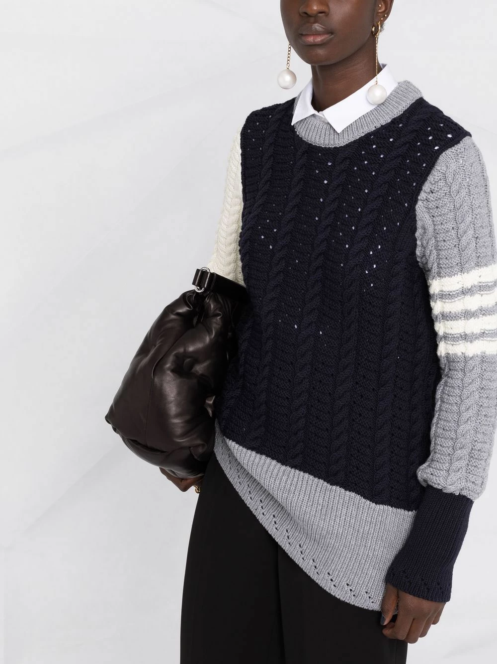 Thom Browne’s classic jumpers are back for the AW21 collection. As per usual, the New York City-based brand has put together a timeless cable-knit colour-block design with the signature 4-bar stripe accentuated in one of the sleeves.