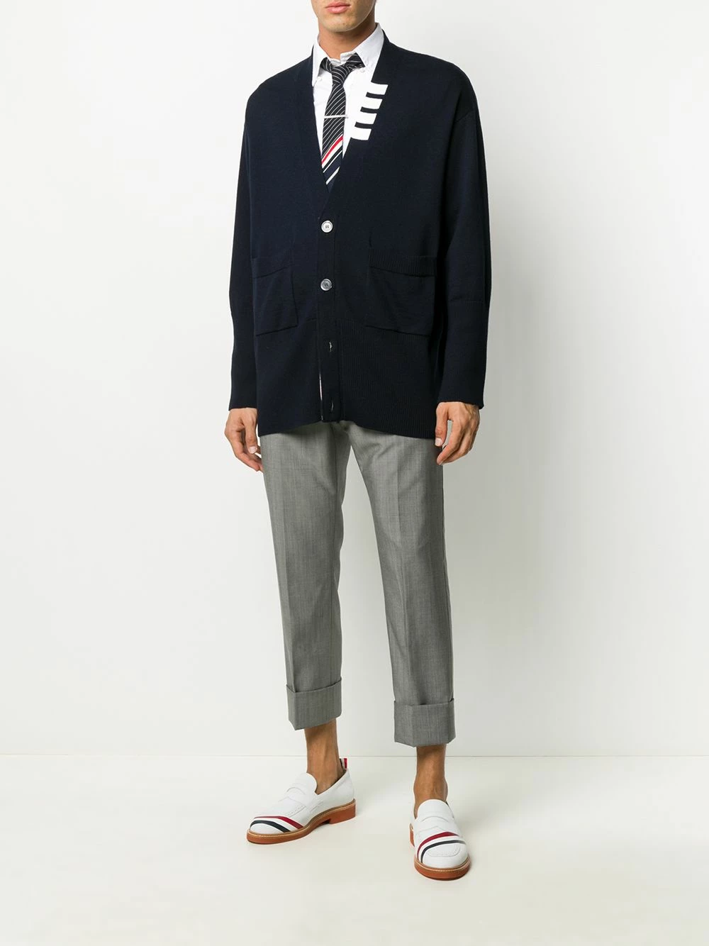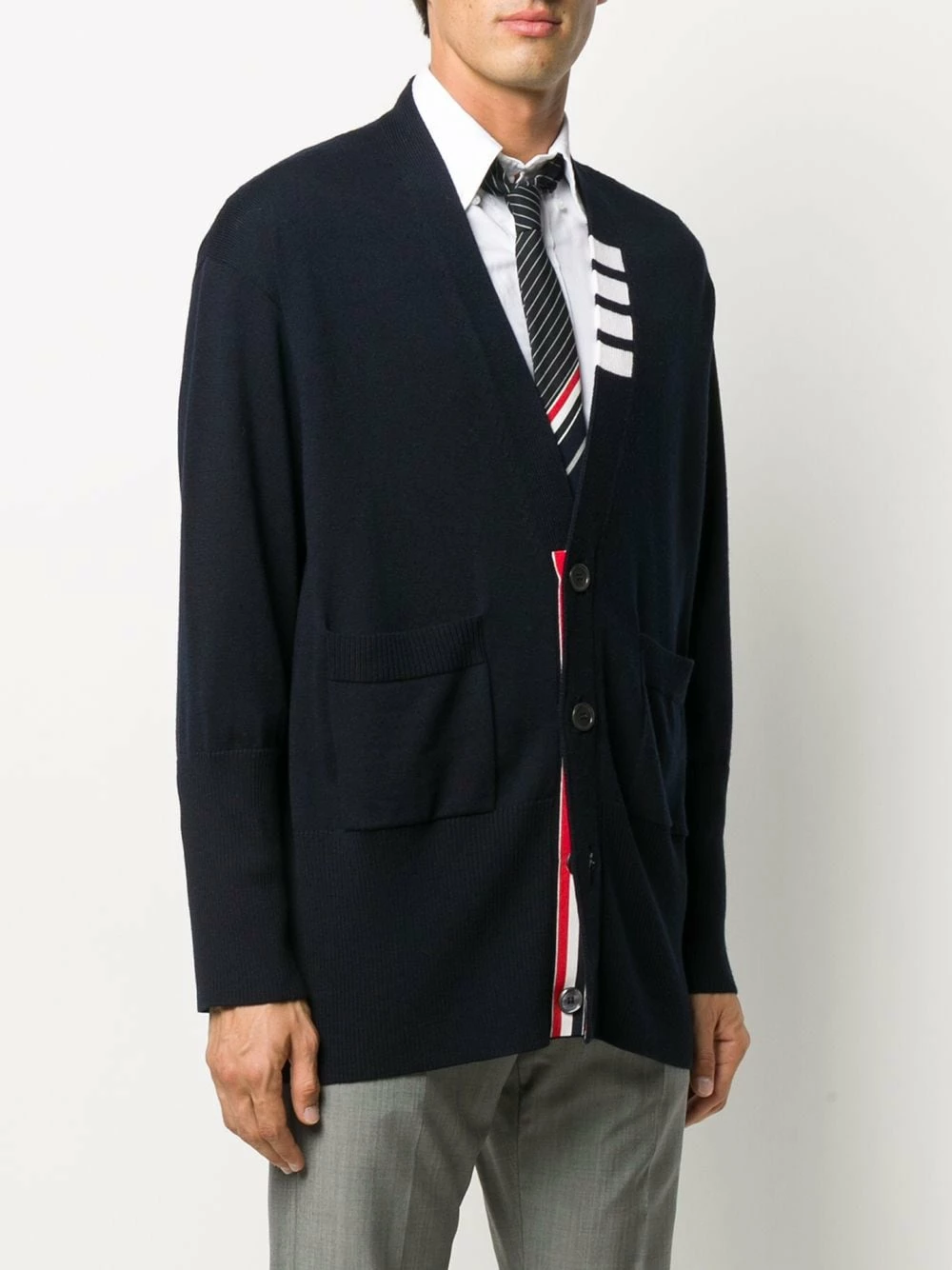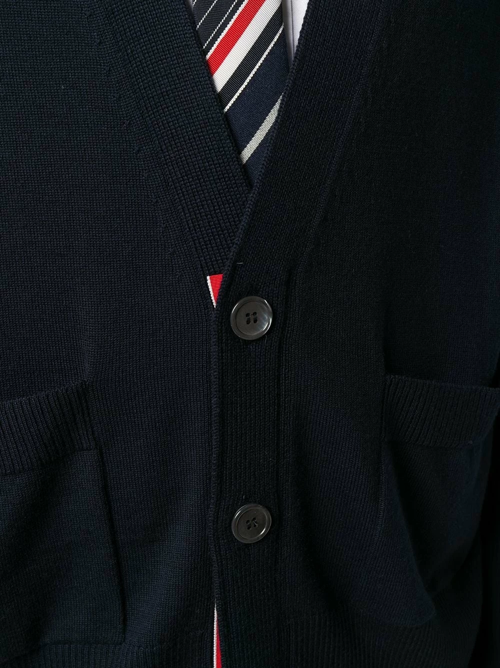 Cold weather means merino wool cardigans. Or one merino wool cardigan in particular. This 4-Bar stripe Thom Browne piece will be the one that you reach for the minute you feel a chill.