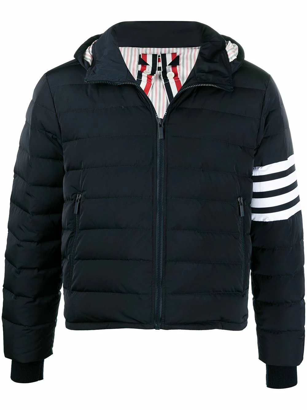 Wipe that smug smile off your face. Just because you won’t feel the cold in this cosy goose down jacket by Thom Browne, doesn’t mean youshould brag about it. Imagine how your cold friends might feel…