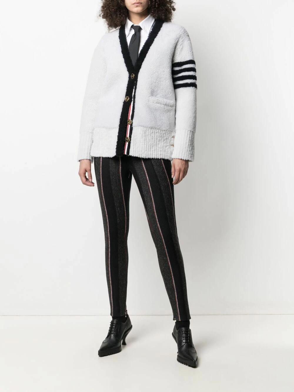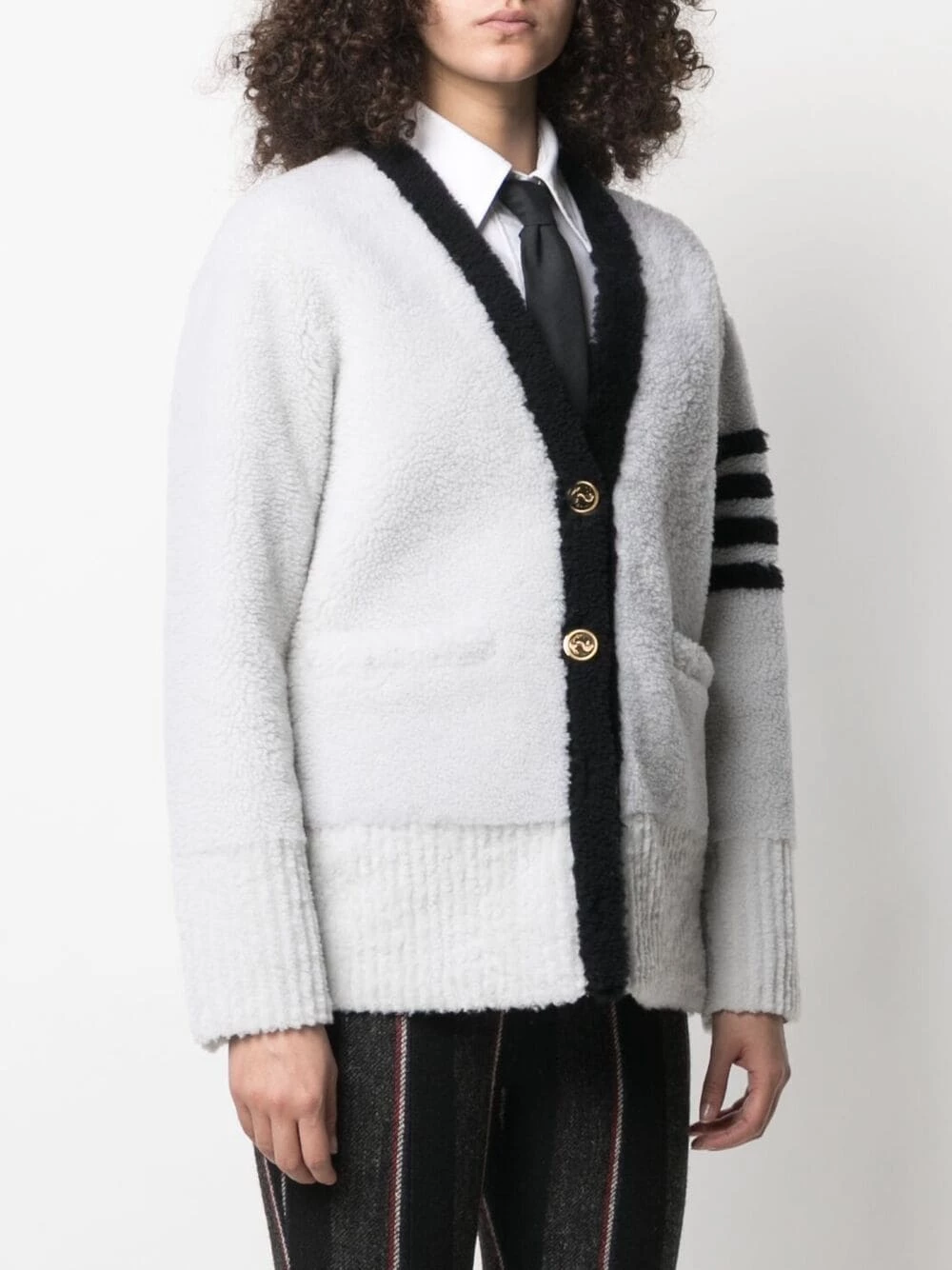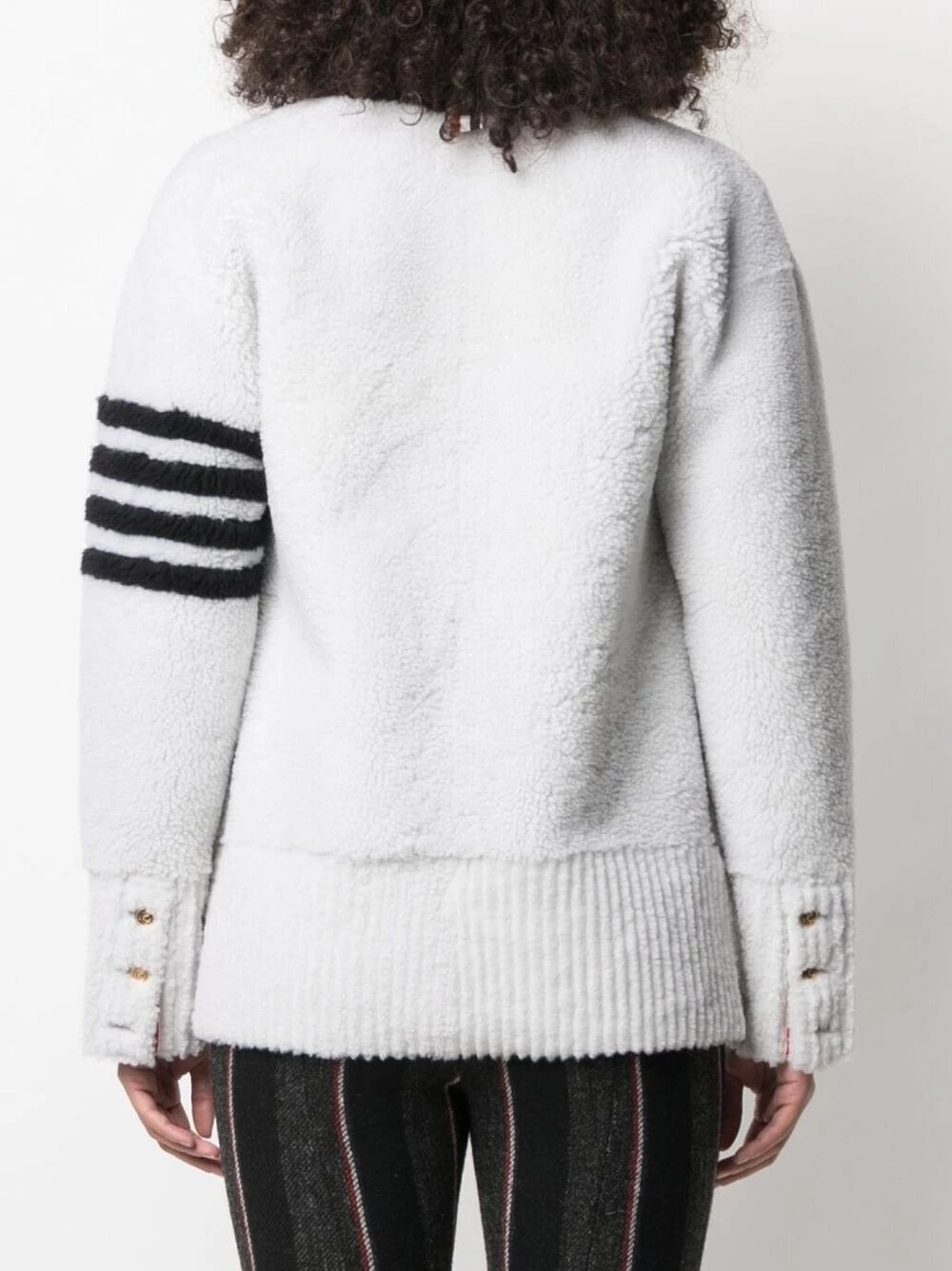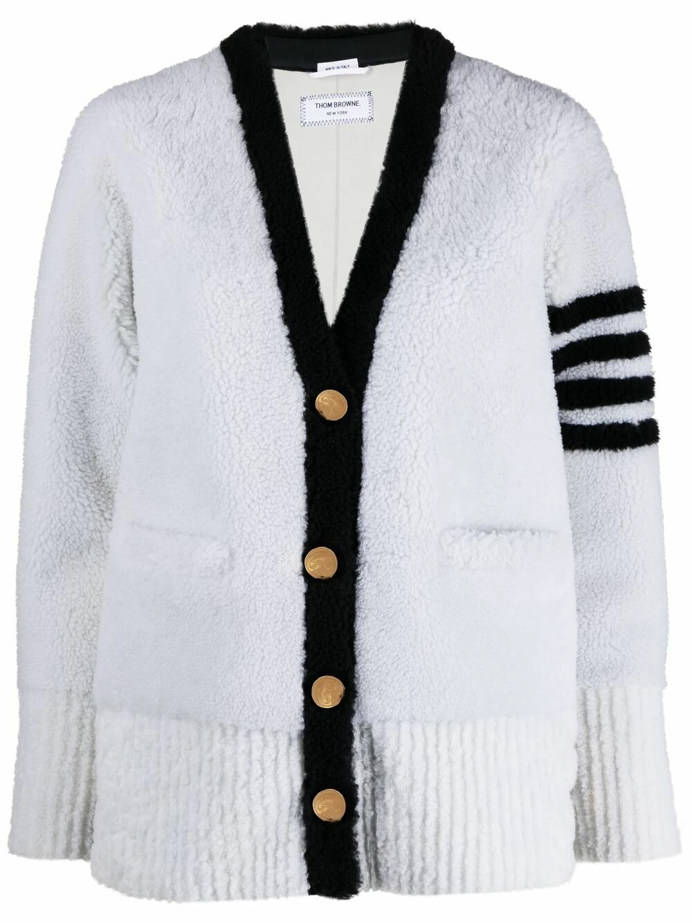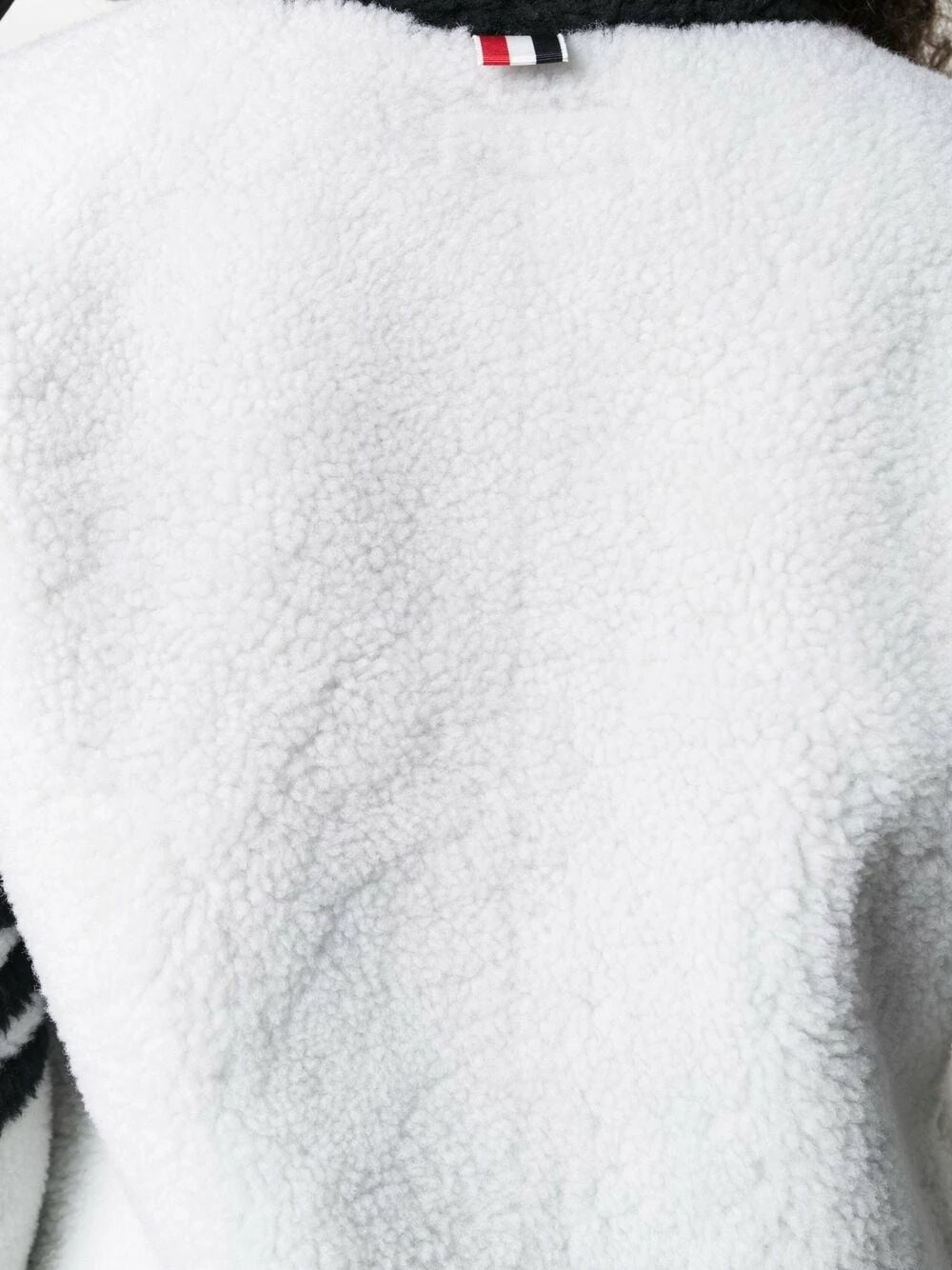 There’s no chance of you catching a chill wearing this 4-Bar stripe cardigan from Thom Browne. Thanks to its shearling construction, you’re guaranteed to stay warm and cosy all season long. Now you’re all set for the frosty days ahead.