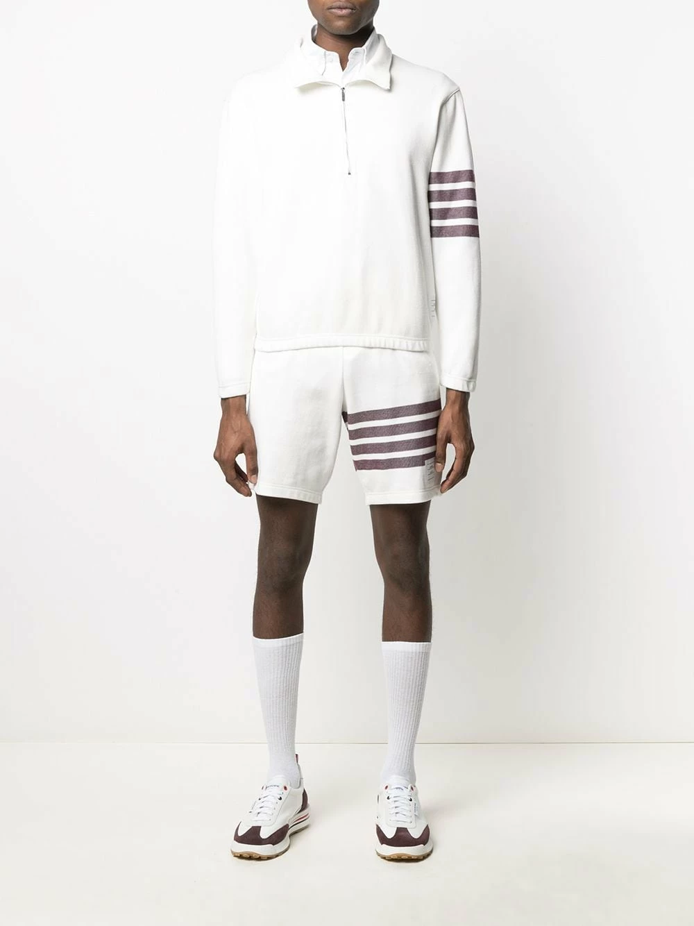 Wear less and exercise more. Thom Browne’s 4-Bar stripe shorts are crafted from a lightweight and breathable cotton to ensure that you can go the extra distance with ease. So get a move on.