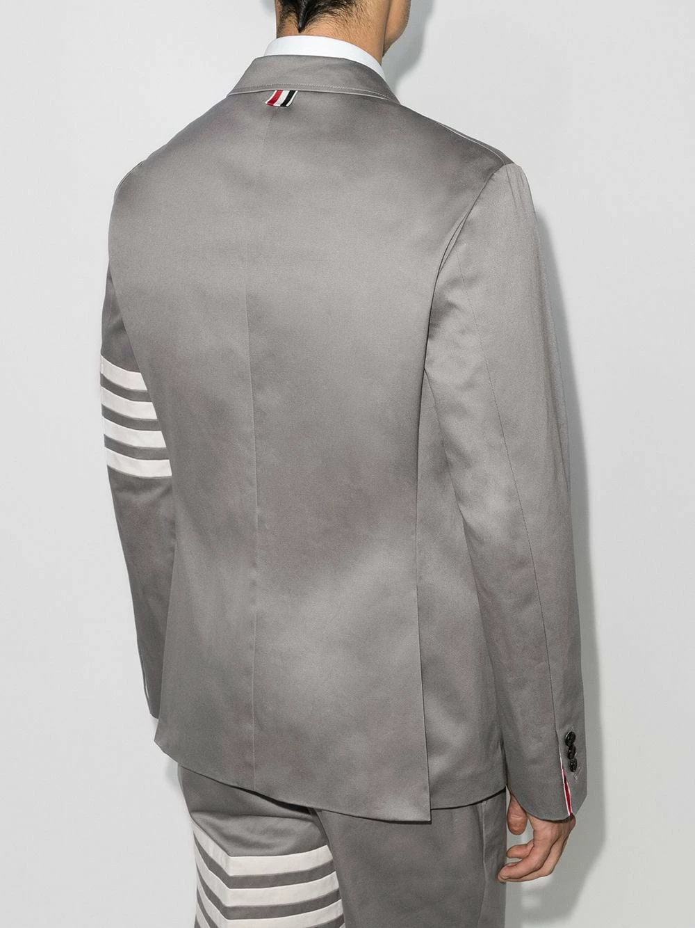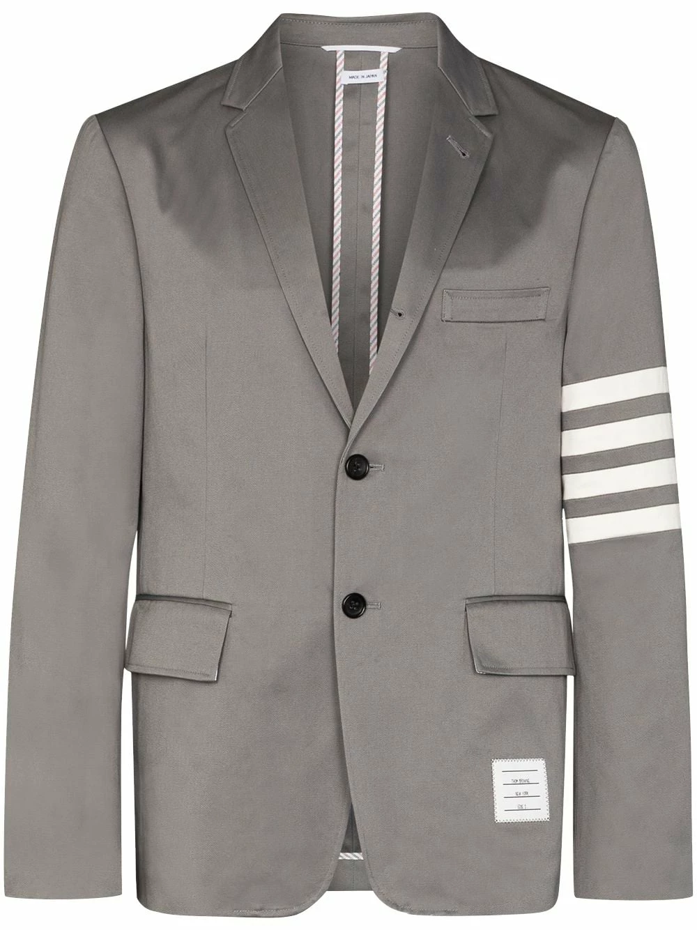 Ready to tailor your wardrobe in a different direction? Smarten up and be bold in this 4-bar stripe single-breasted blazer from Thom Browne that compliments your silhouette with a slim fit. Suits you well.
