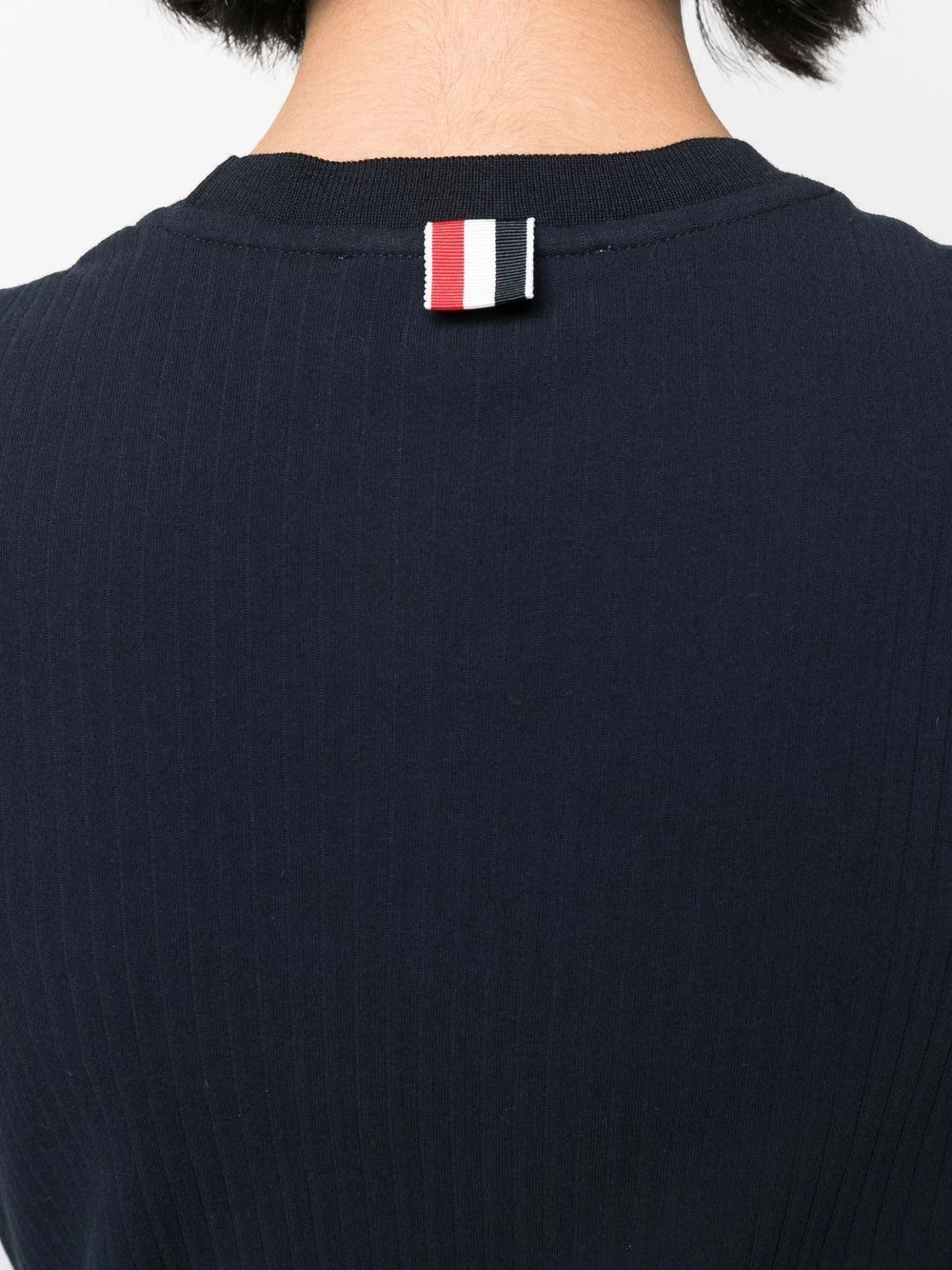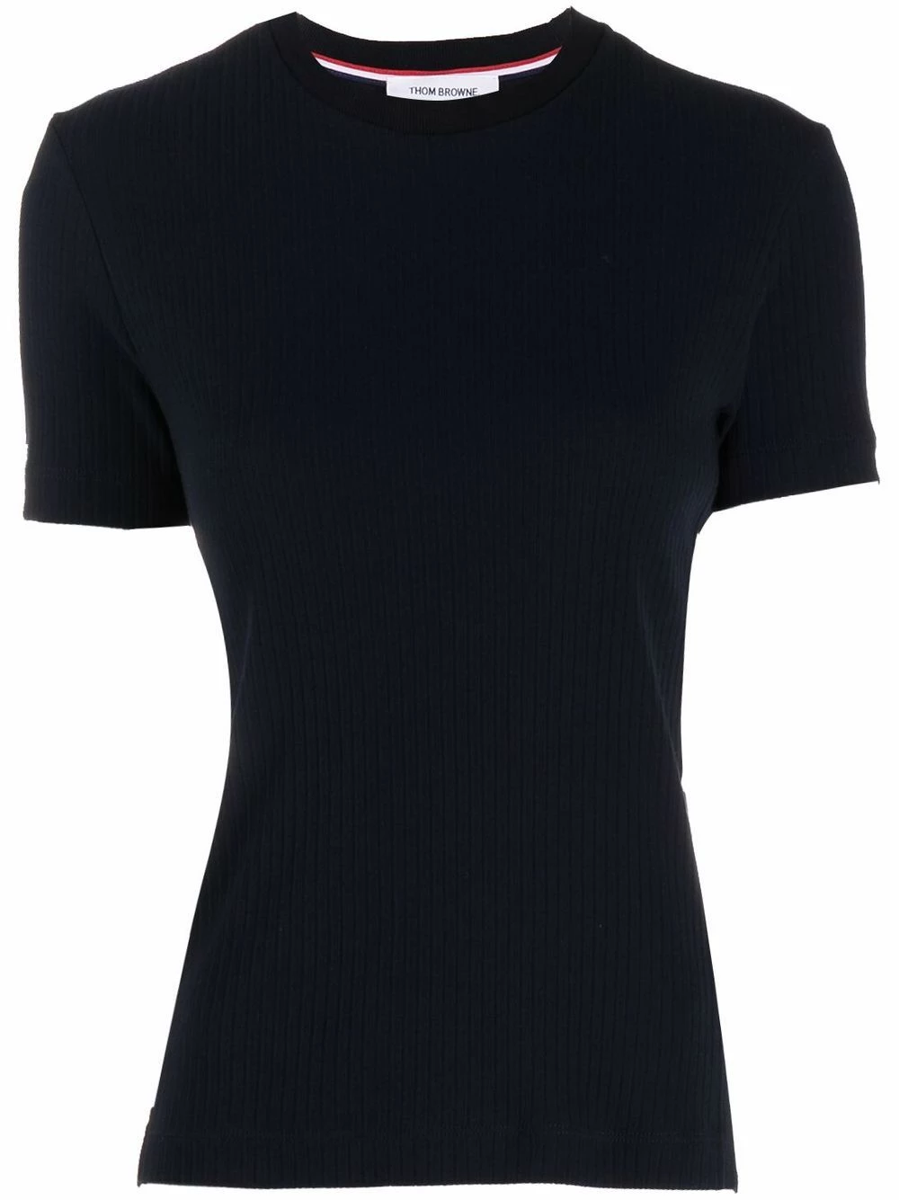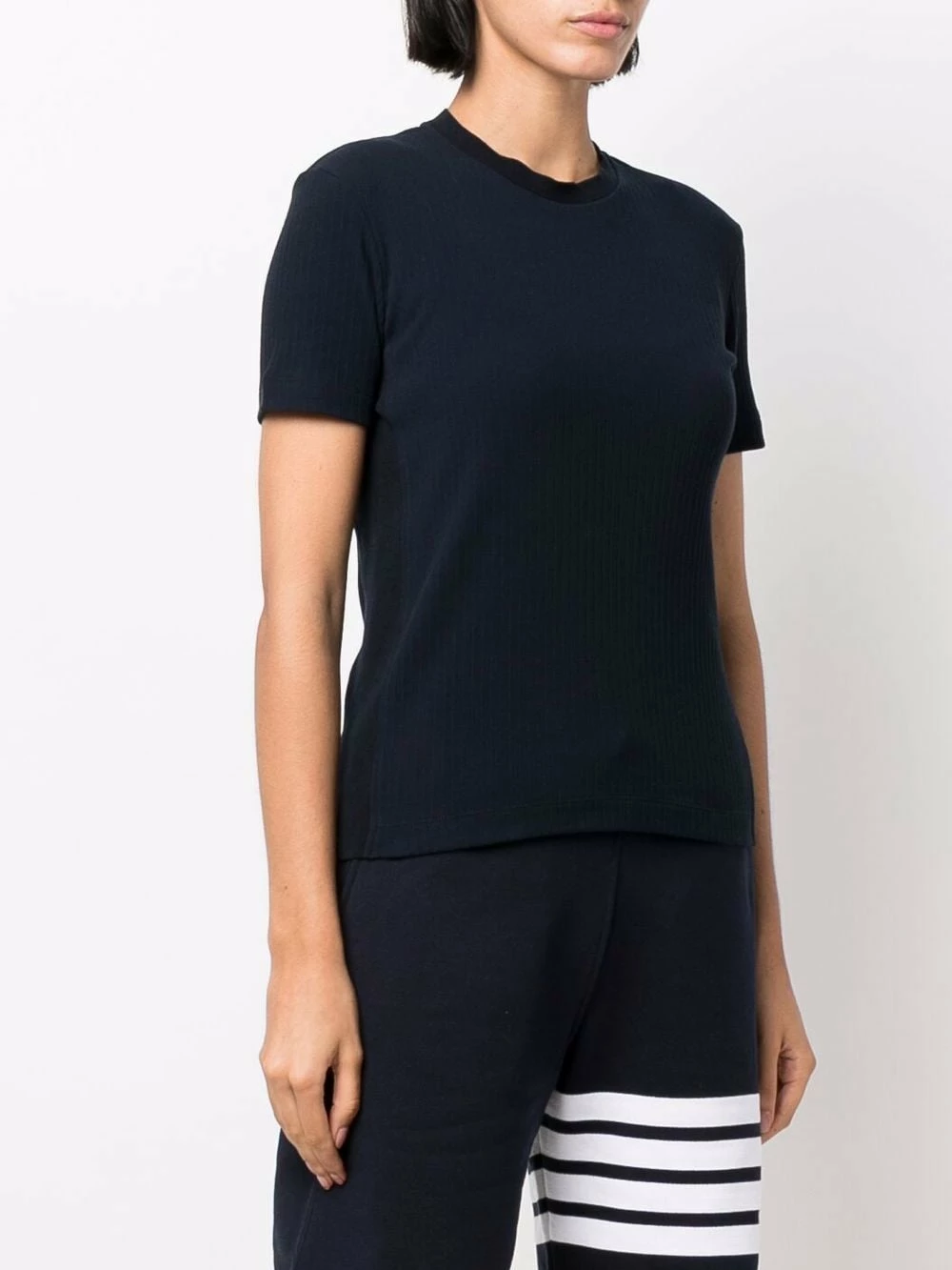 The 4-Bar stripe has become synonymous with Thom Browne. Presented in a classic navy colourway, this T-shirt is finished with the recognisable signature on the side.