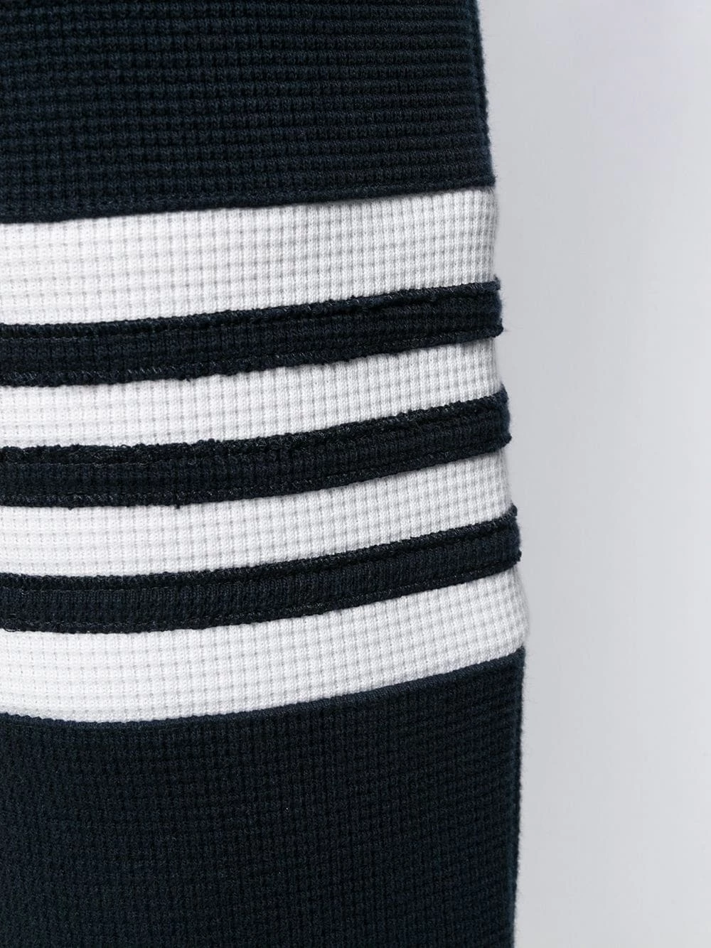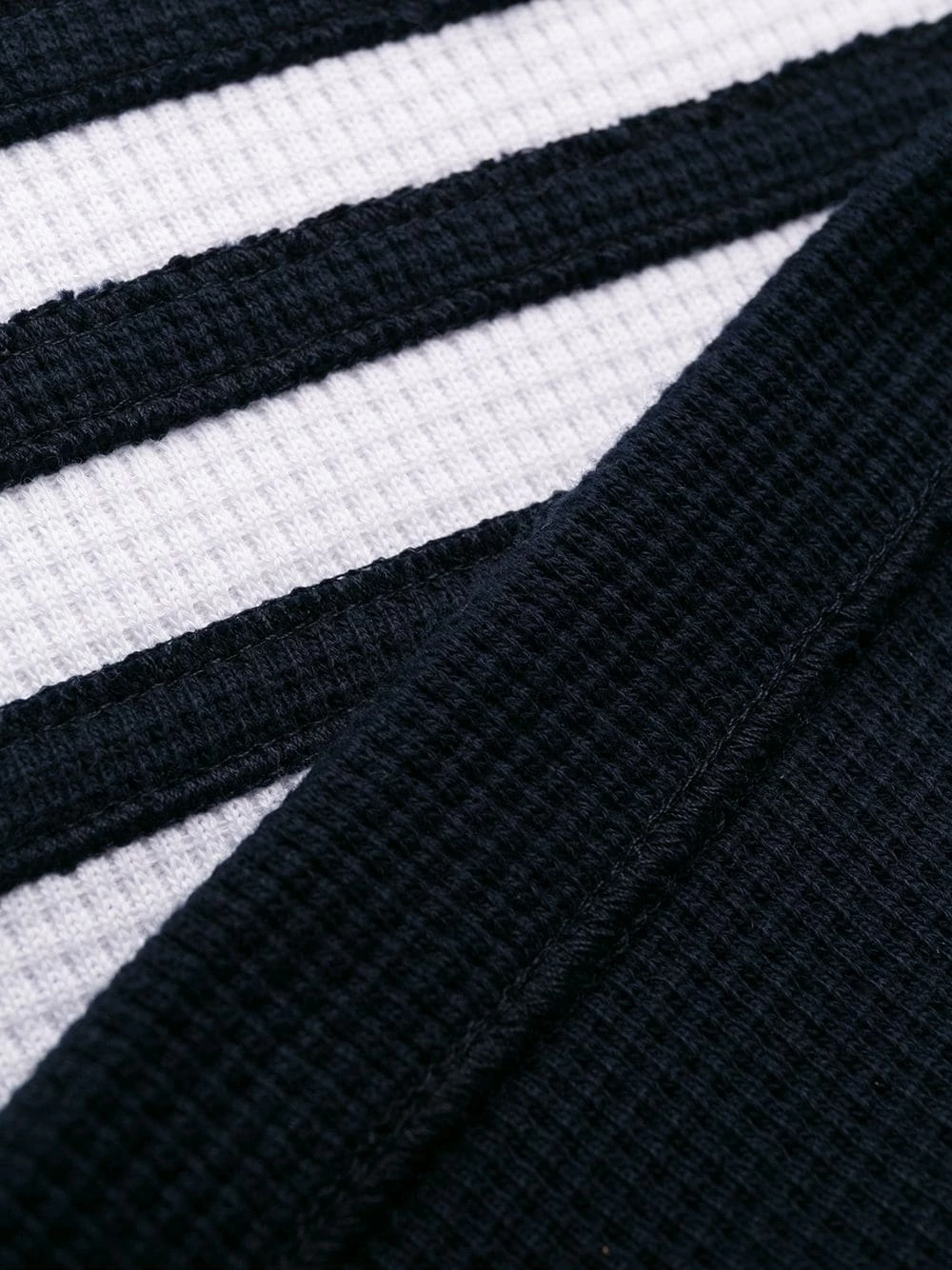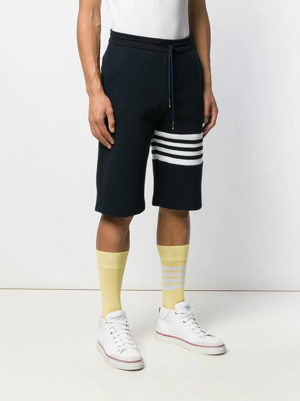 A lineup of investment pieces designed to withstand the test of time, Thom Browne’s most recent collection continues to blur the lines between refined tailoring and contemporary sportswear. As seen in these dark navy blue cotton 4-Bar Sweatshorts that feature an elasticated waistband with a drawstring fastening, a tricolour grosgrain tab on the rear and signature quadruple white stripes.