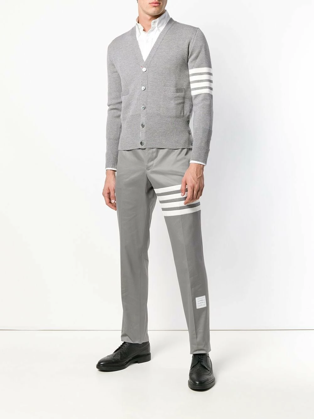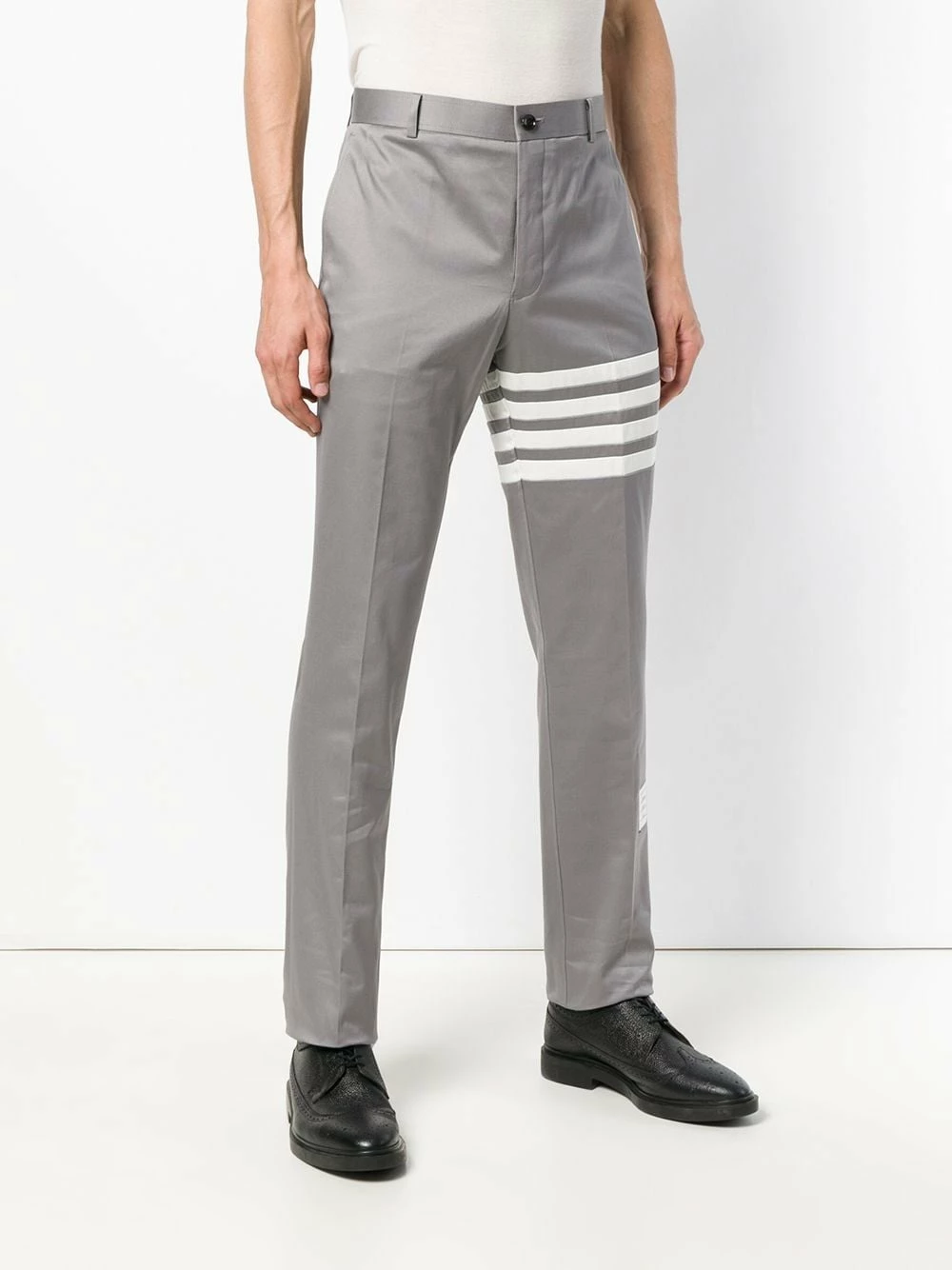 These Thom Brown wool trousers feature a traditional tailored fit, with a pressed crease adorning its legs. A signature 4-bar stripe motif appears at the left leg, giving these trousers a contemporary twist that is synonymous with the designer.