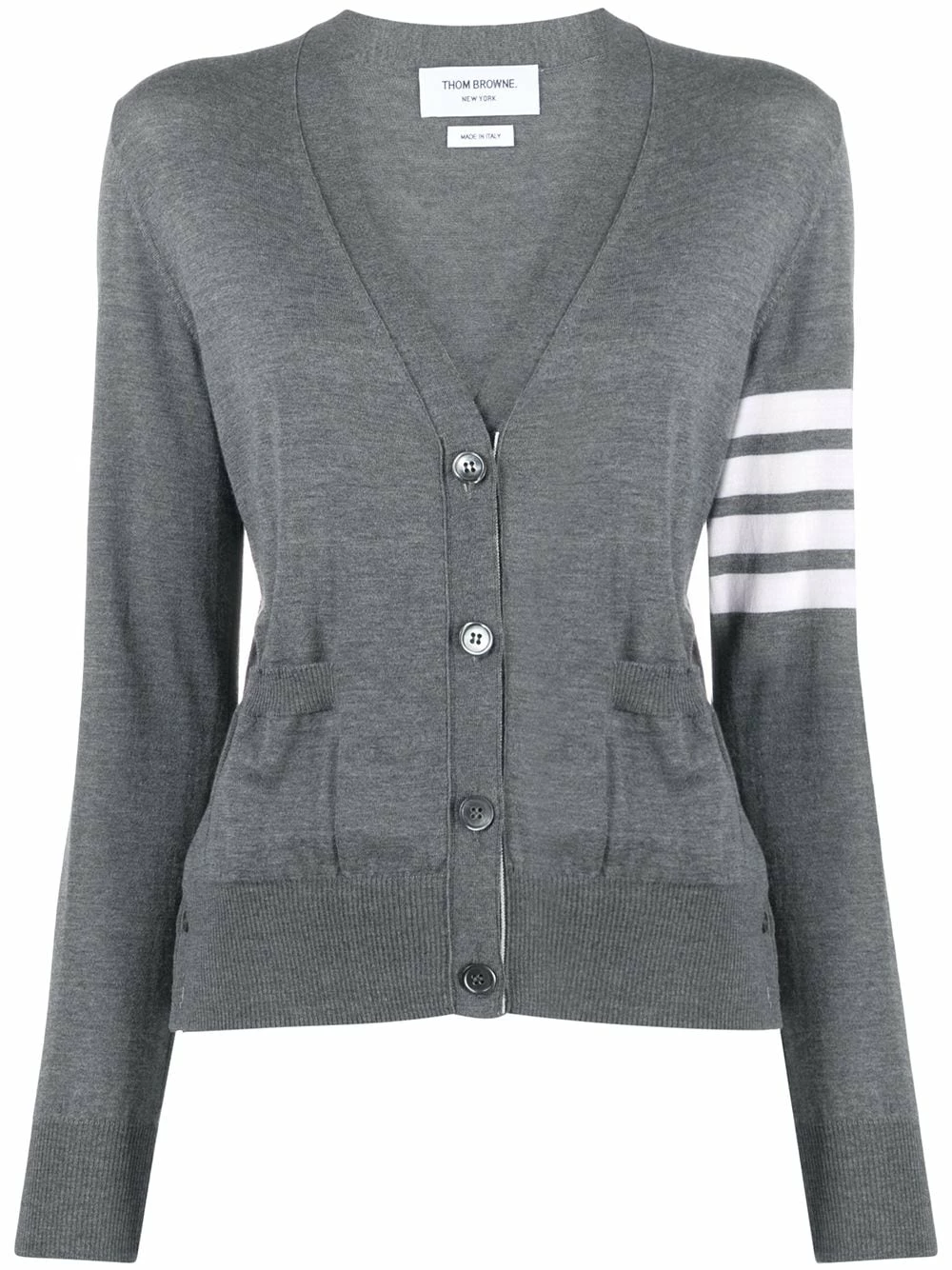 Thom Browne is best known for sharp suiting, but there’s more than one way to look smart. Spun from wool, this cardigan features the brand’s signature 4-Bar stripe on a single sleeve. Button up.