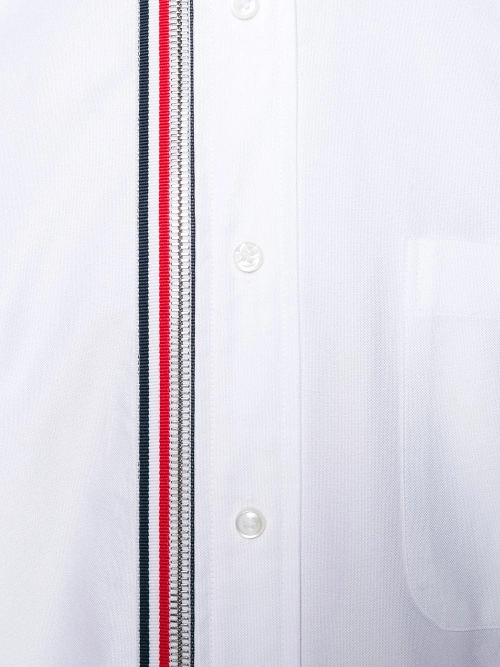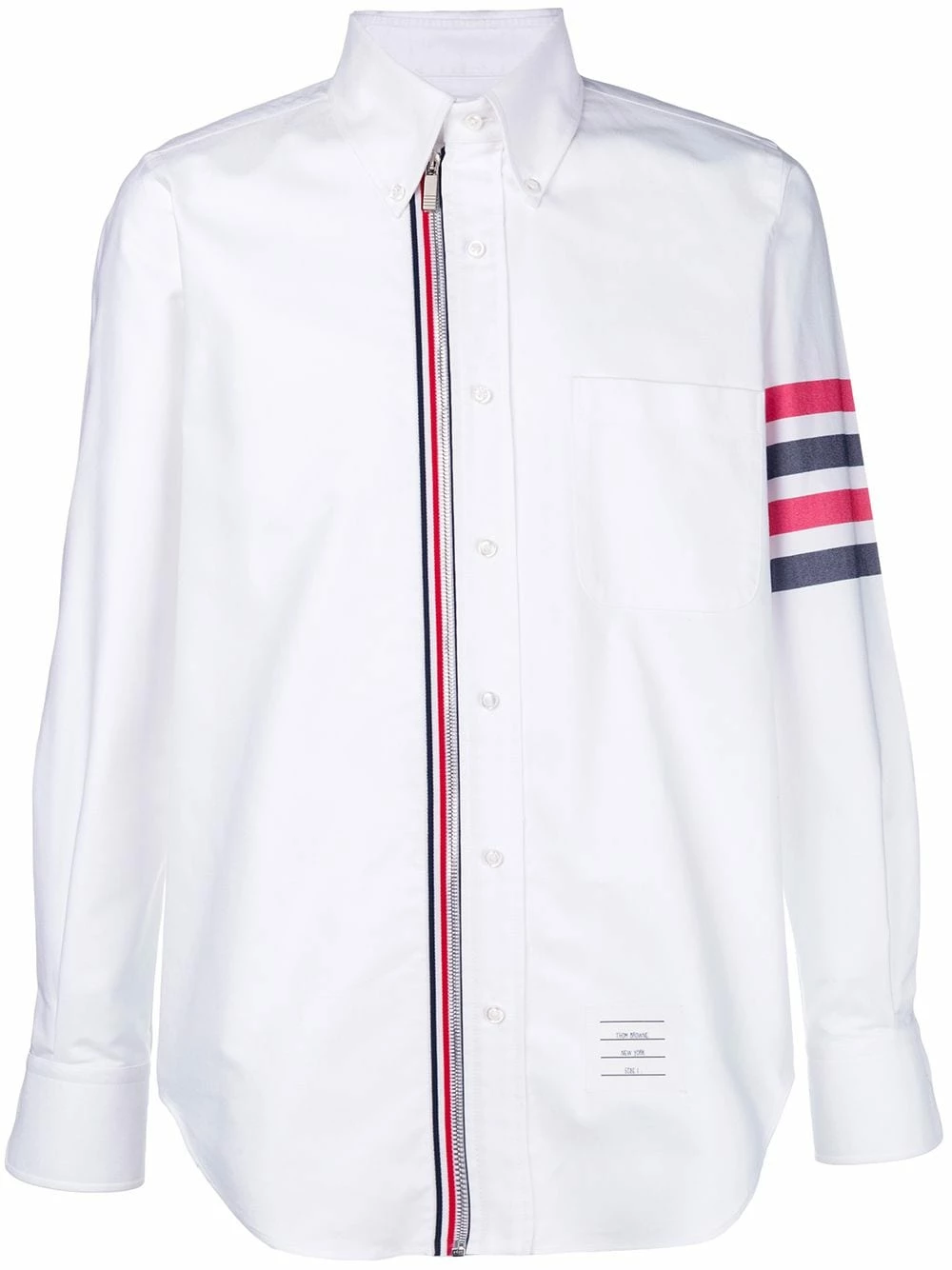 Preppy style with a modern twist? You must be talking about this zip-detail shirt from Thom Browne! It can’t wait to meet you. Featuring a collar style, a front button fastening, a front button fastening, a straight fit, a side zip detail, long sleeves, button cuffs, a curved hem, a 4-Bar stripe and a RWB stripe.