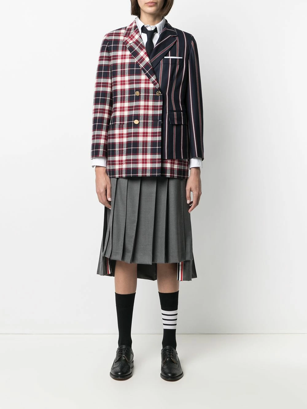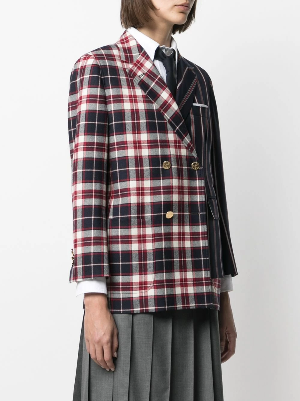 When work gets boring, keep it interesting with some unique officewear. With an asymmetric design, this Thom Browne blazer will imbue your ensembles with a dash of irreverence. Do you dare?