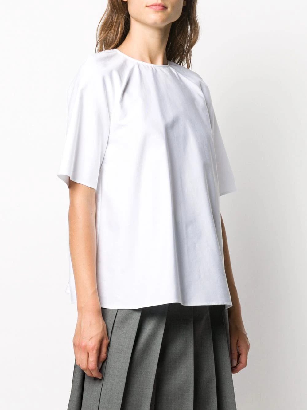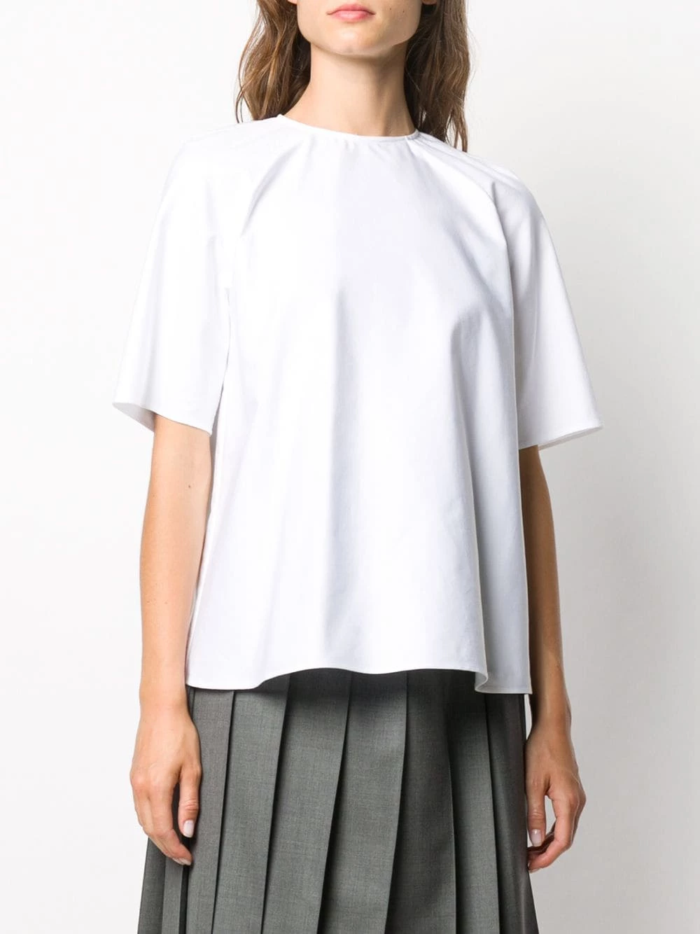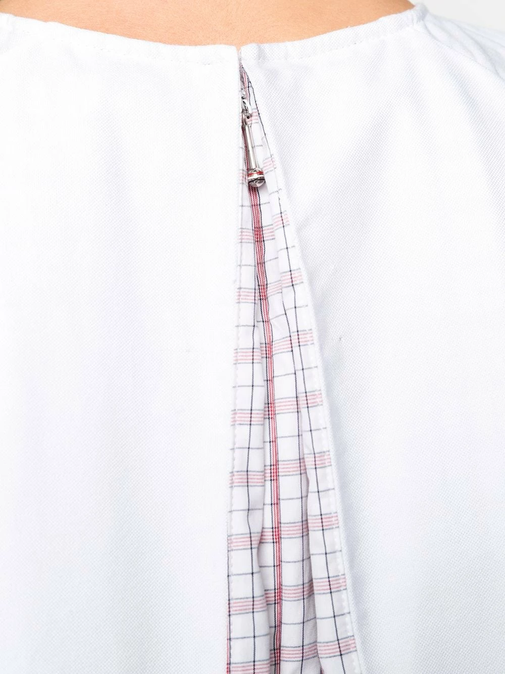 Balloon your back, with this cotton blouse from Thom Browne. The piece features back pleat detailing with a plaid check pattern, short sleeves and round neck. The party is in the back, baby.