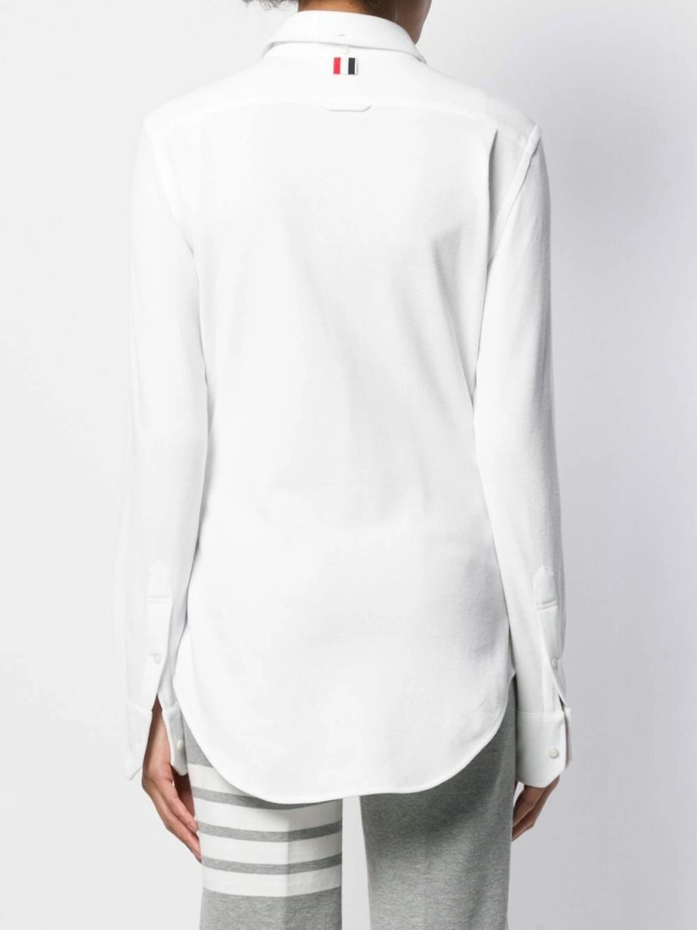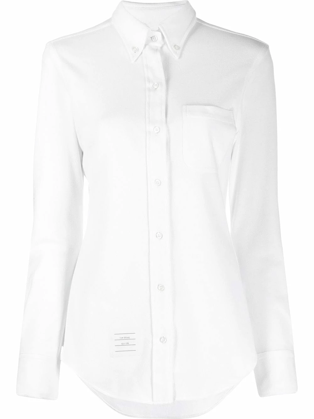 Keep your wardrobe looking smart and fresh. This white cotton button-down piqué shirt from Thom Browne will ensure you’re the best-dressed in the room. That’s practically a guarantee. Featuring a button down collar, a front button fastening, long sleeves, a chest pocket and a curved hem.