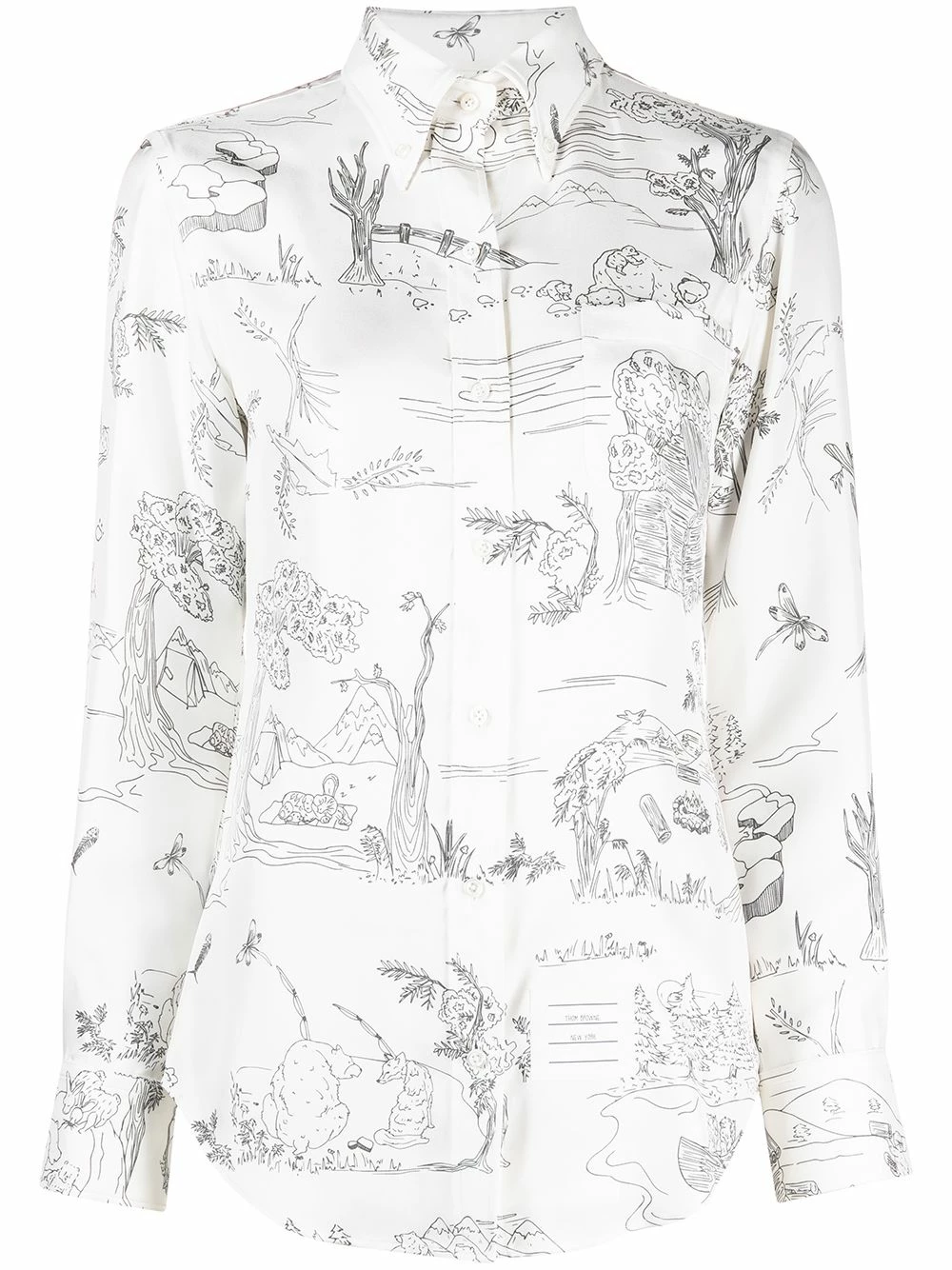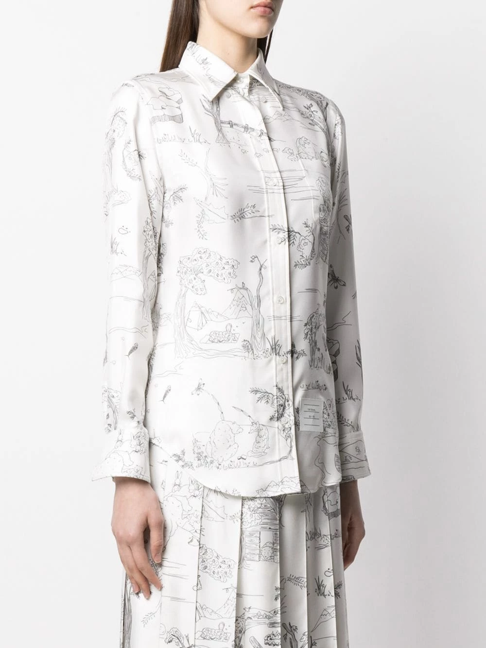 Impeccable tailoring with a playful twist. Crafted from silk twill, this Thom Browne shirt features an animal camp print that will showcase your great taste in fashion. Contemporary refinement.