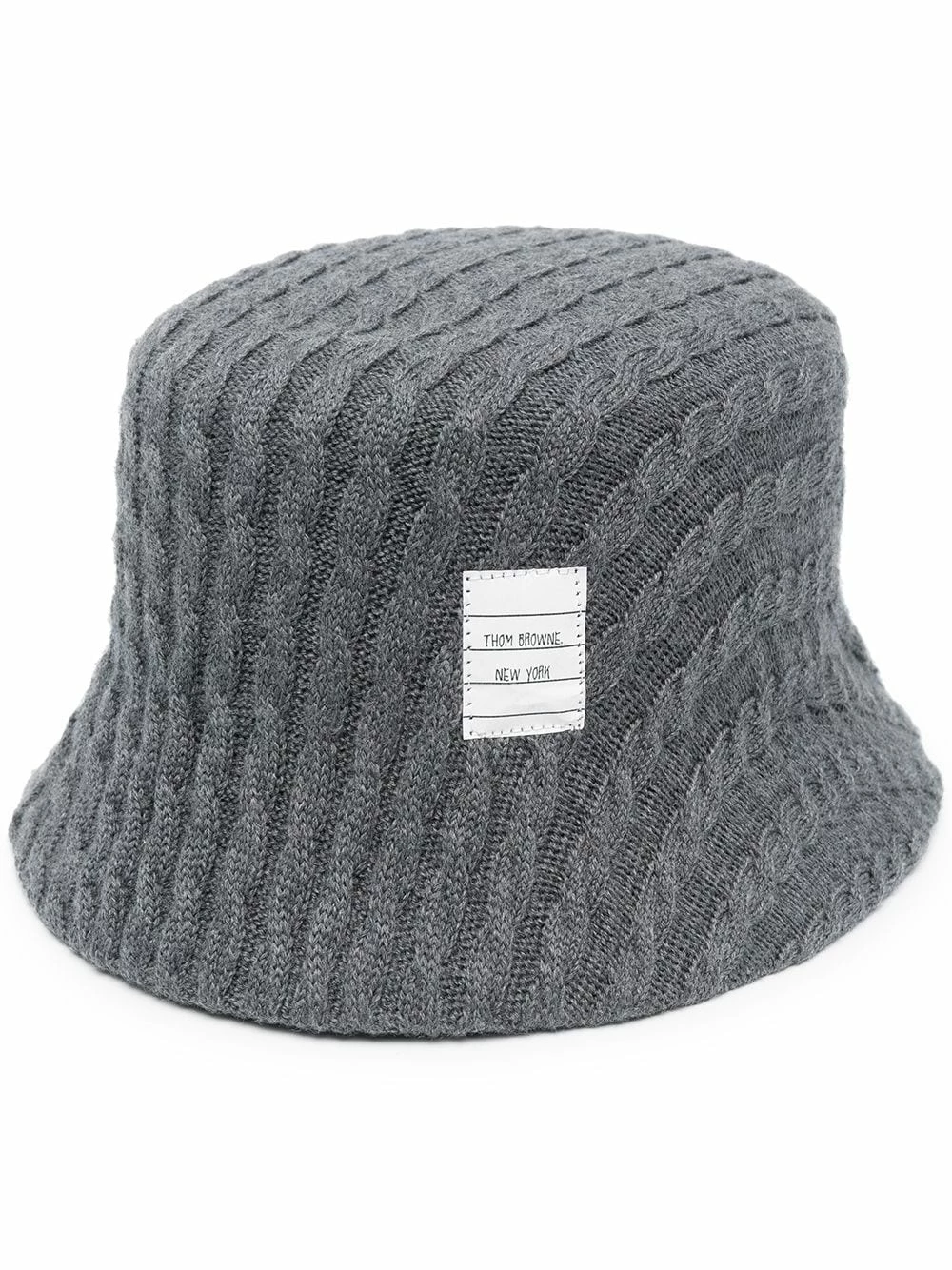 Upgrade your accessorizing game with this sleek bucket hat from Thom Browne. With a cable knit construction, this piece will add an extra dose of elegance to your look. Get cosy, but make it fashion.