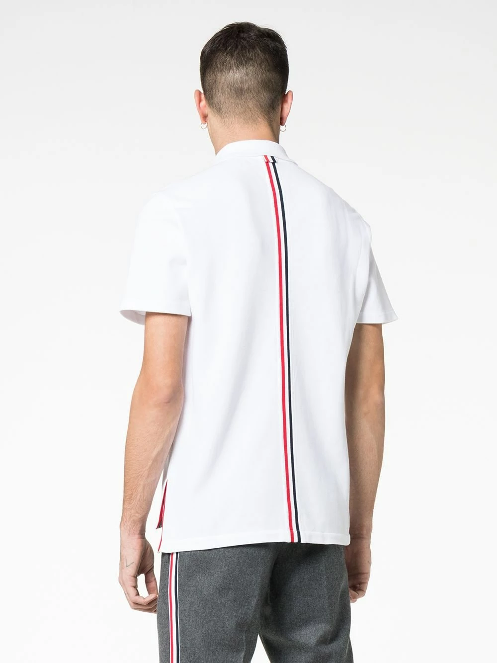 White cotton Center-Back Stripe Piqué Polo from Thom Browne featuring a classic polo collar, a front button placket and short sleeves.