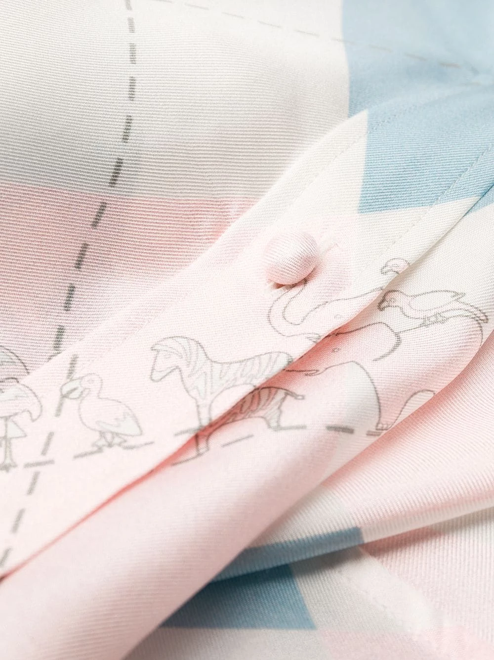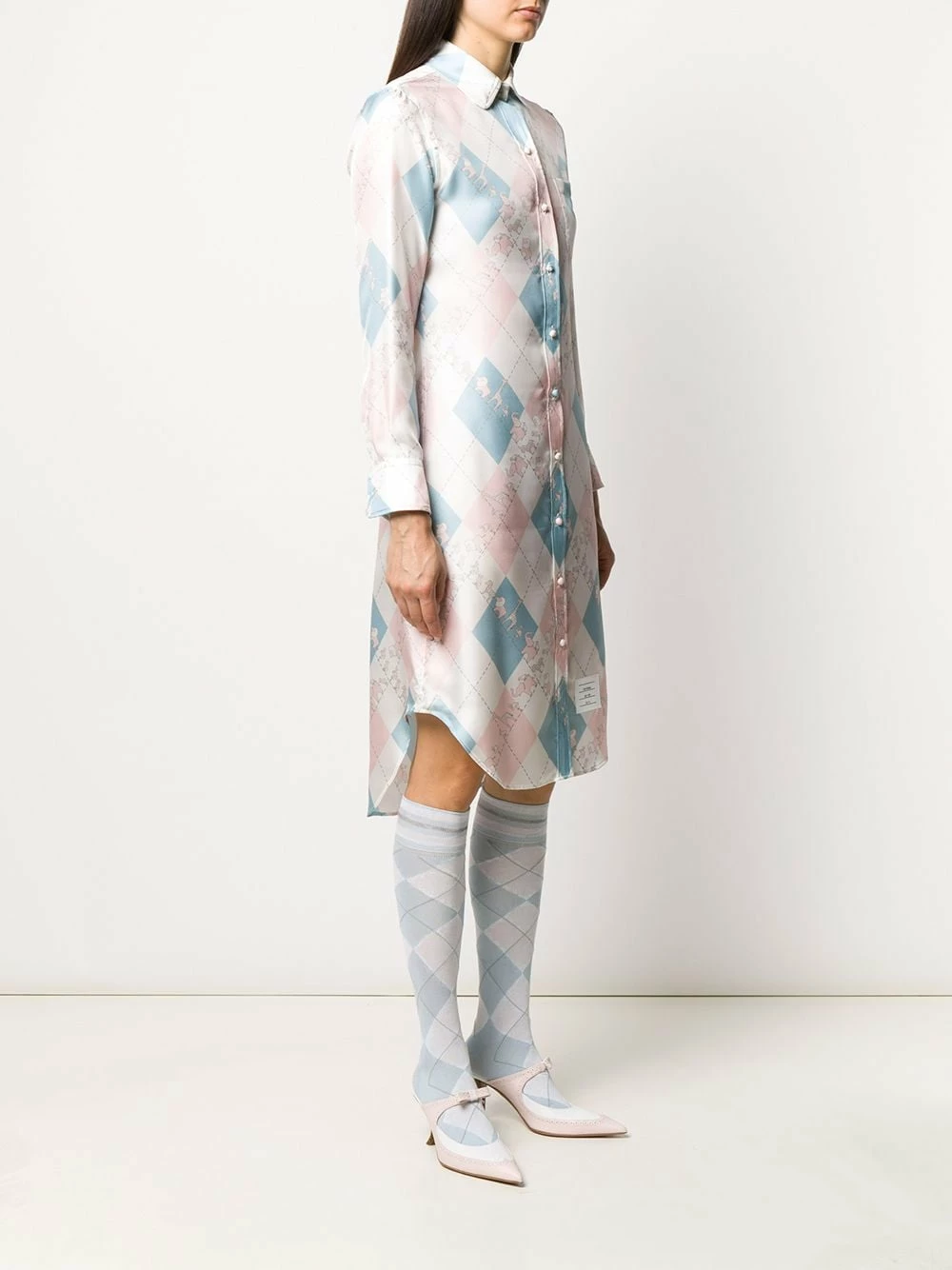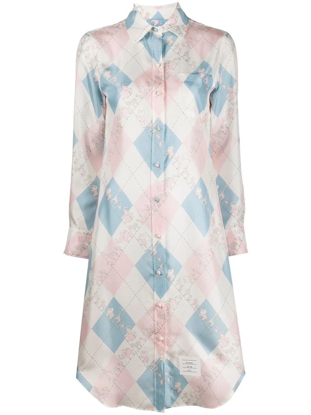 Classy enough to get to the office and stylish enough for a date with friends, this white, blue and pink silk classic printed shirt dress from Thom Browne is an instant upgrade. Simple, stylish and pretty feminine! Undoubtedly an essential piece. Featuring a classic collar, a front button fastening, long sleeves, button cuffs, a curved hem, a mid-length and all-over print.