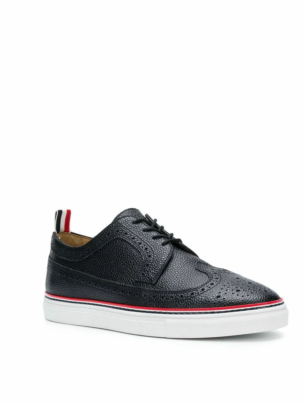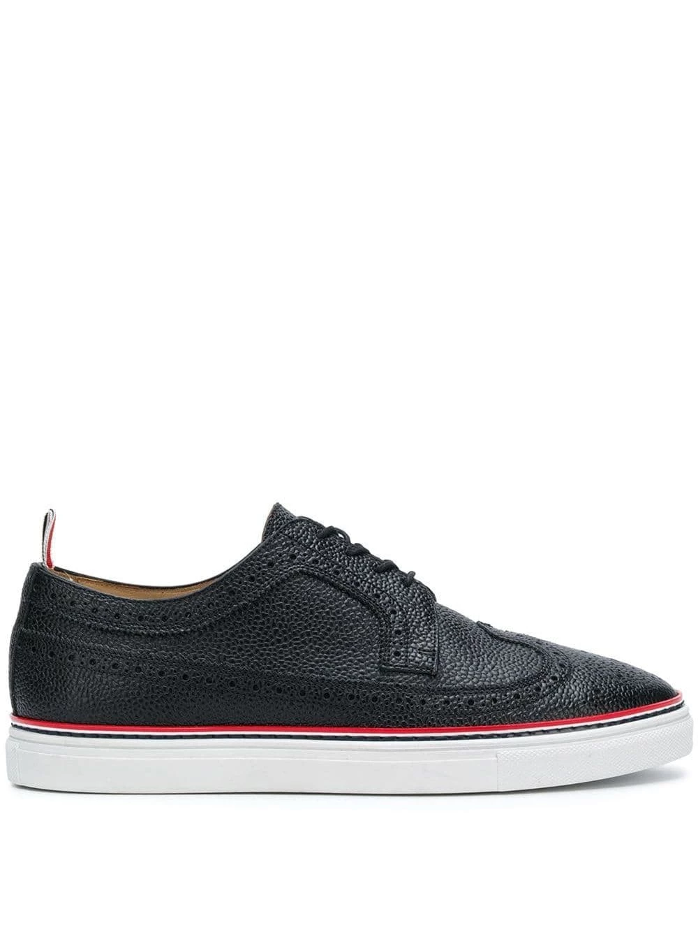 These piped-trim, Thom Browne longwing brogues will have you feeling like you’re walking on sunshine (woah). A white rubber sole adds a modern touch, that you’ll love showing off. And who could blame you, when they look this good? Featuring a textured style, punch hole detailing, a pull tab at the rear, a branded insole, a contrast piped trim, an almond toe, a front lace up detail and a white rubber sole.