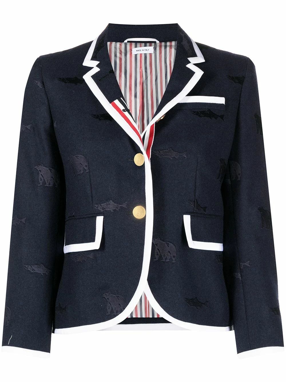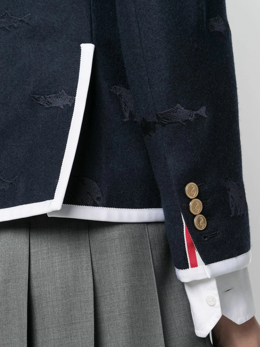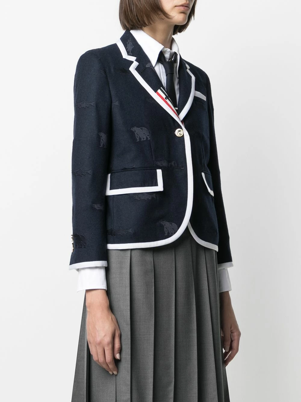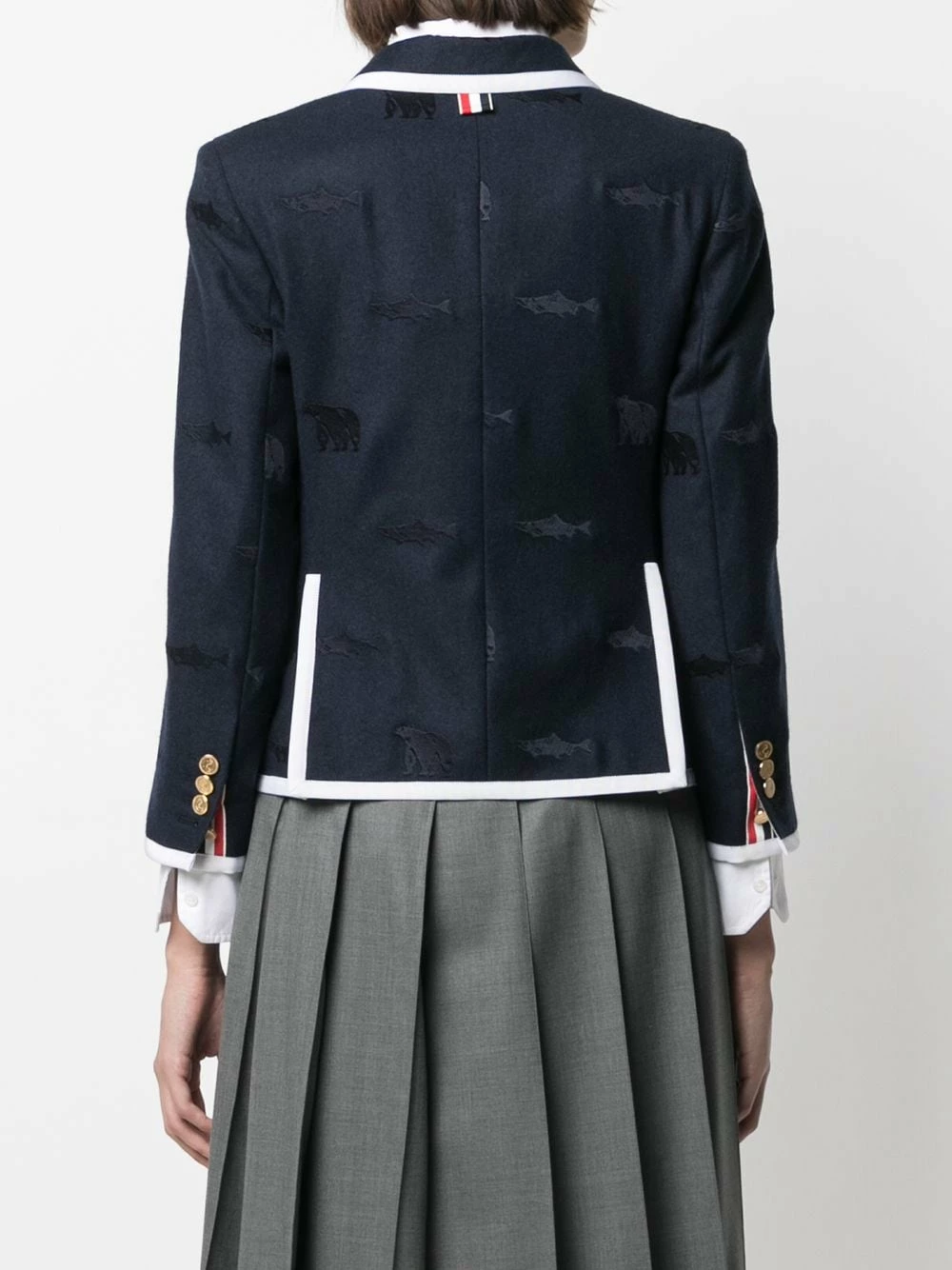 It’s time to add some flair to your office looks. With a subtle animal embroidery, this Thom Browne blazer will imbue your ensembles with a sense of playful elegance. Classic, but never boring.