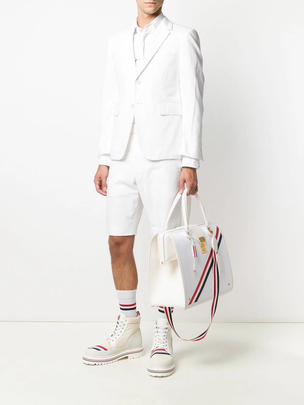 Short construction doesn’t have to lose it’s smarts. Known for shrinking silhouettes and keeping heritage style, Thom Browne keeps it clever. Short and sweet.
