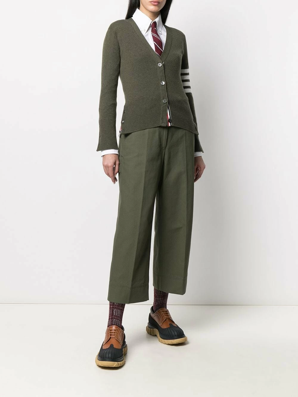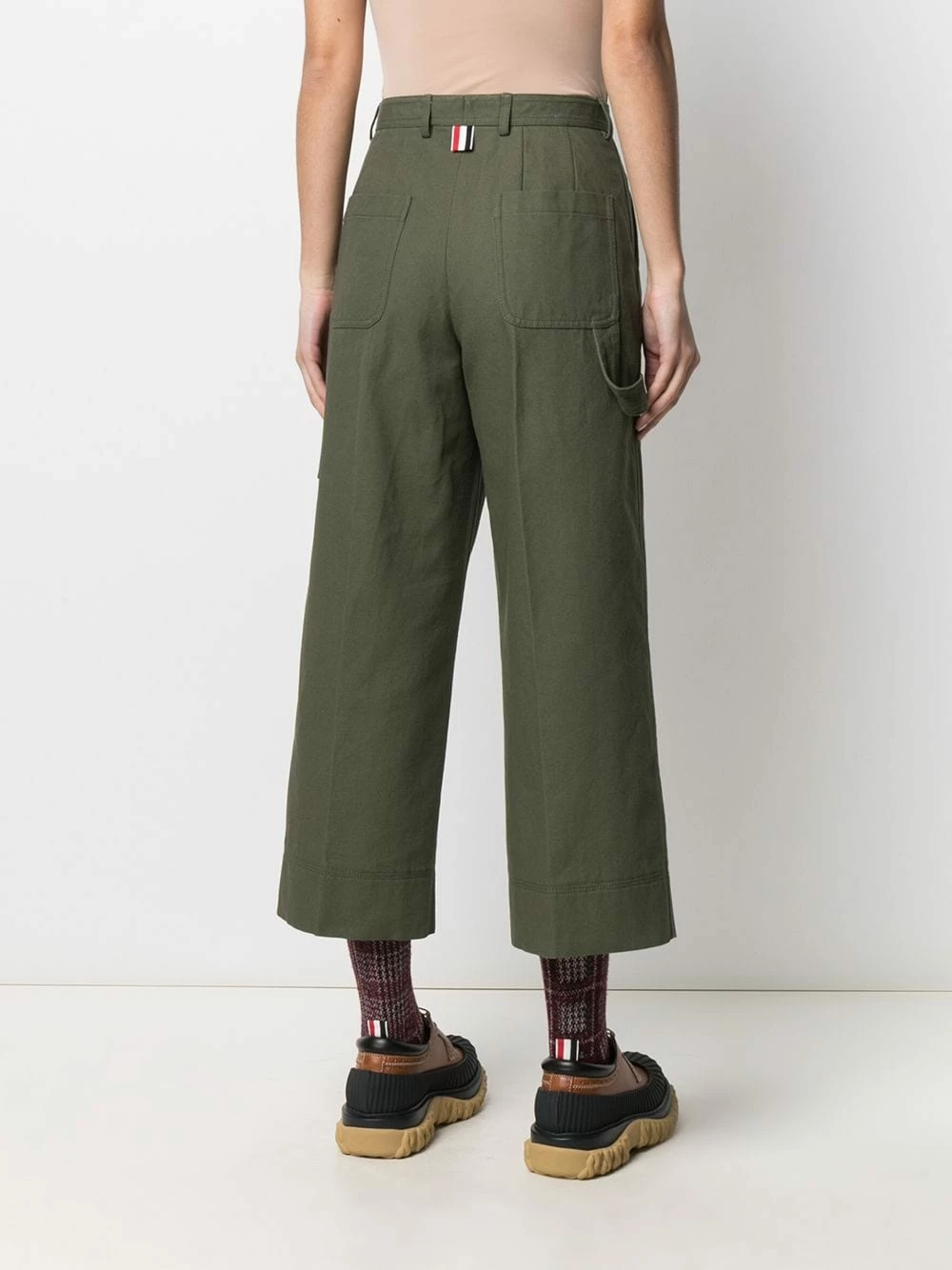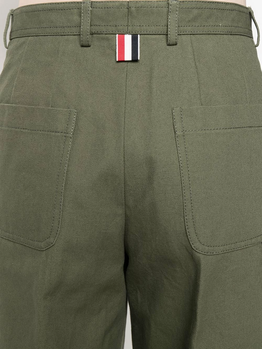 Is it the weekend yet? Well, if you’re not already counting down the days you will be with this pair of slouchy cotton utility trousers by Thom Browne in your wardrobe. Off-duty style at its best. Featuring a high waist, a cropped length, a grosgrain band, side pockets, a concealed front fastening and rear pockets.