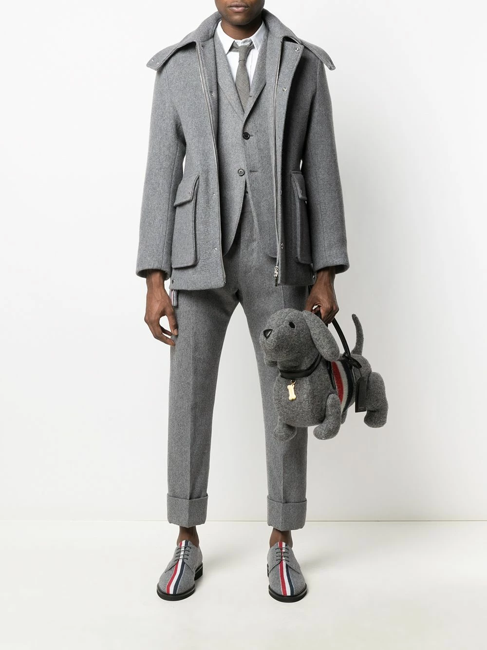 Dog lover, aren’t you? Designed in a dog shape and detailed with a signature RWB stripe to its front, this tote from Thom Browne will give your looks a fun twist. Spread the love!