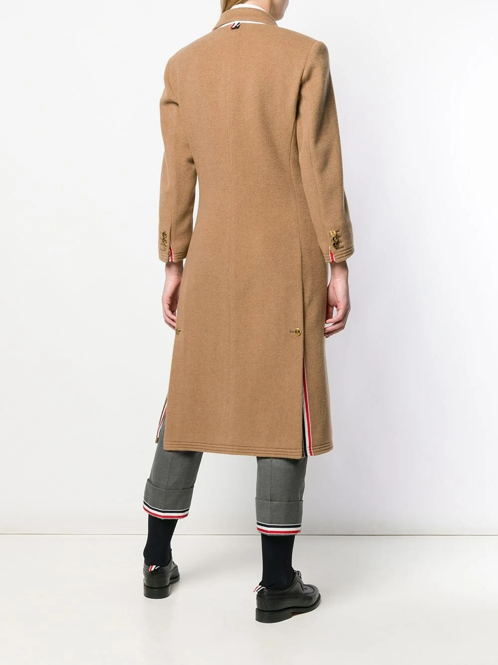 No wardrobe is complete without a classic camel coat. Yours isn’t complete without this double-breasted camel coat from Thom Browne. Don’t let your outerwear be an afterthought.