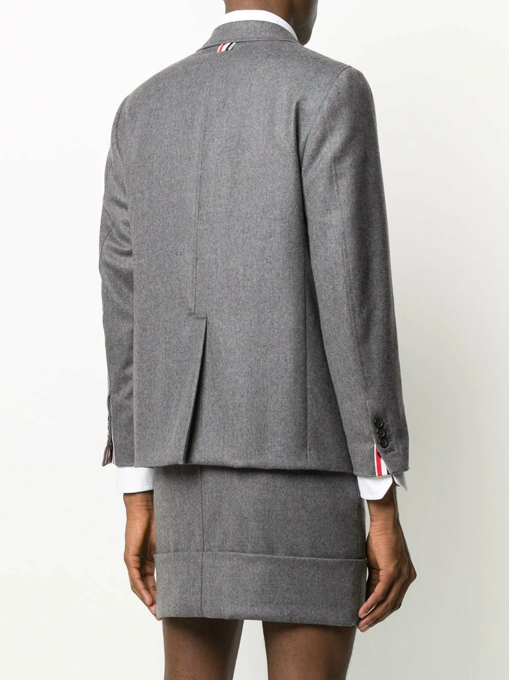 Sleek tailoring doesn’t need to be boring and Thom Browne knows how to do it like no one else! Crafted from soft wool, this double-breasted flannel sack jacket will pass the test of time. Timeless is key! Featuring a double breasted front fastening, a chest pocket, long sleeves, a double breasted front fastening, two front pockets and a rear central vent.