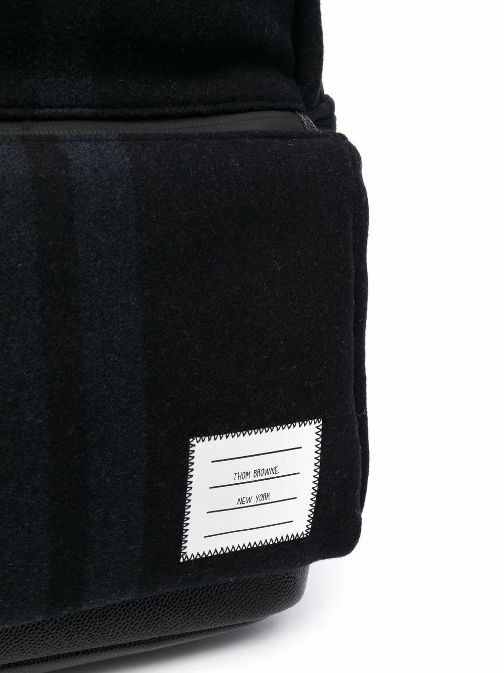 Combining function and sleek style, this Thom Browne backpack boasts a spacious main compartment and versatile black colourway, whilst signature red, white and blue stripes add bold detailing to the piece.
