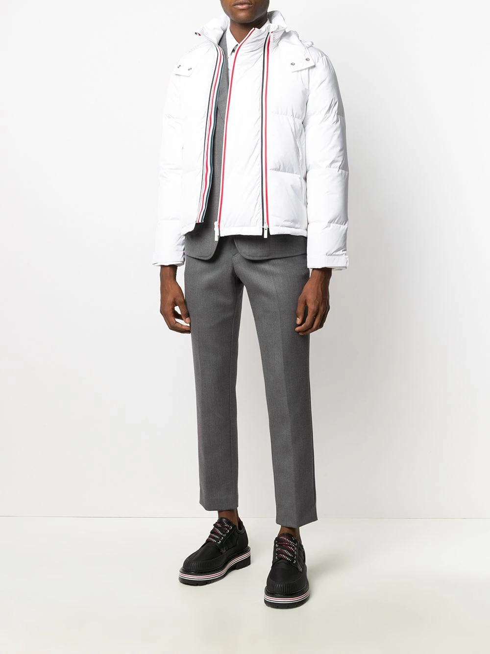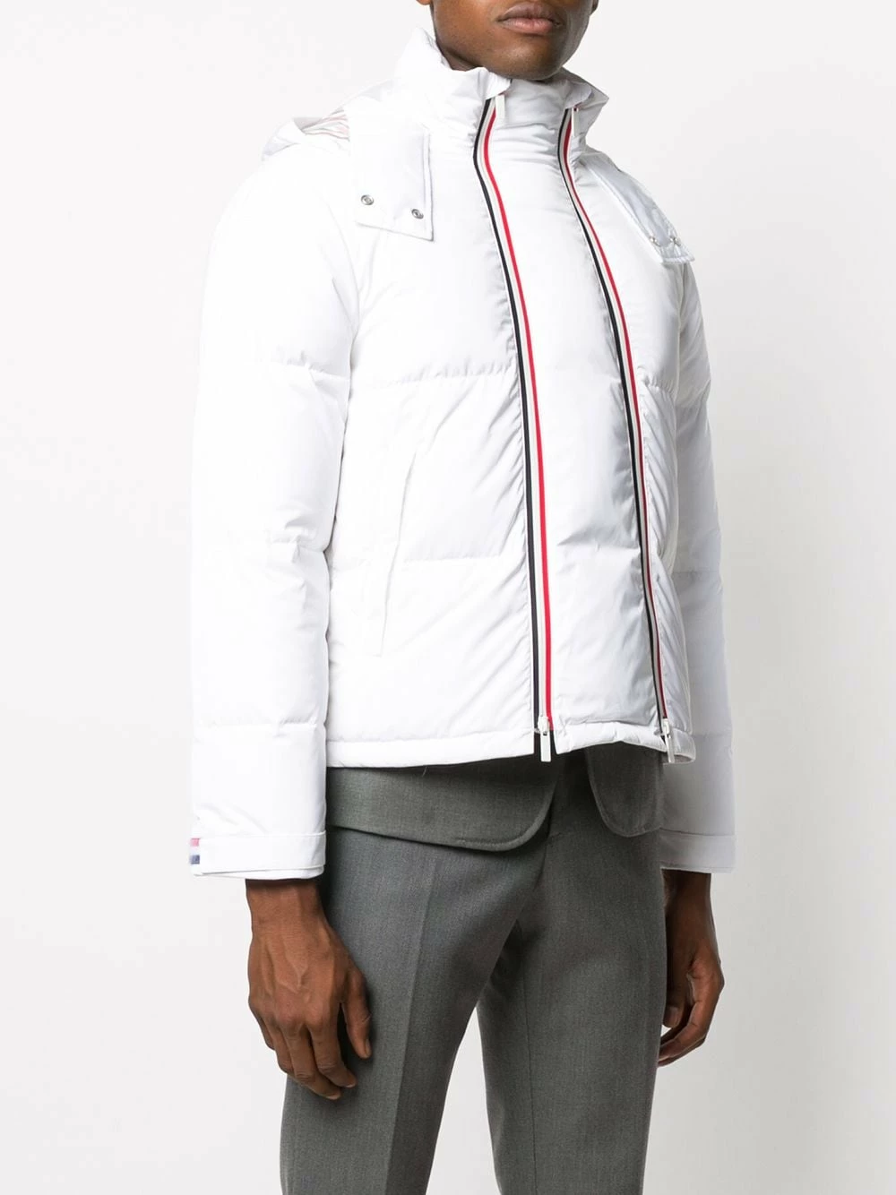 Hood? Check. Down-feather filling? Check. Padded sleeves? Check. This crisp white down jacket from Thom Browne is all you could want in your cold-fighting outerwear. Take it with you when you next venture onto the slopes to witness its full potential.
