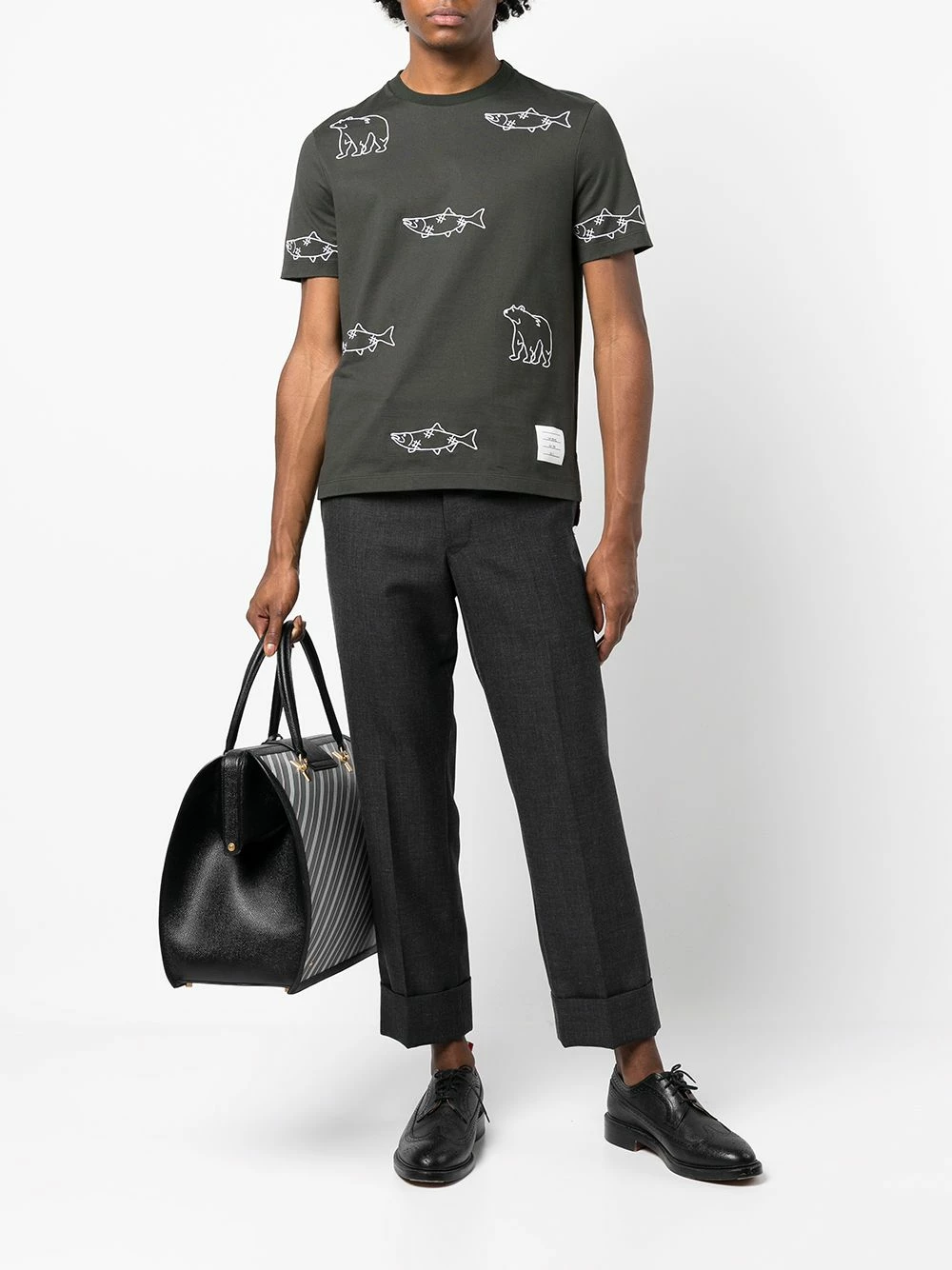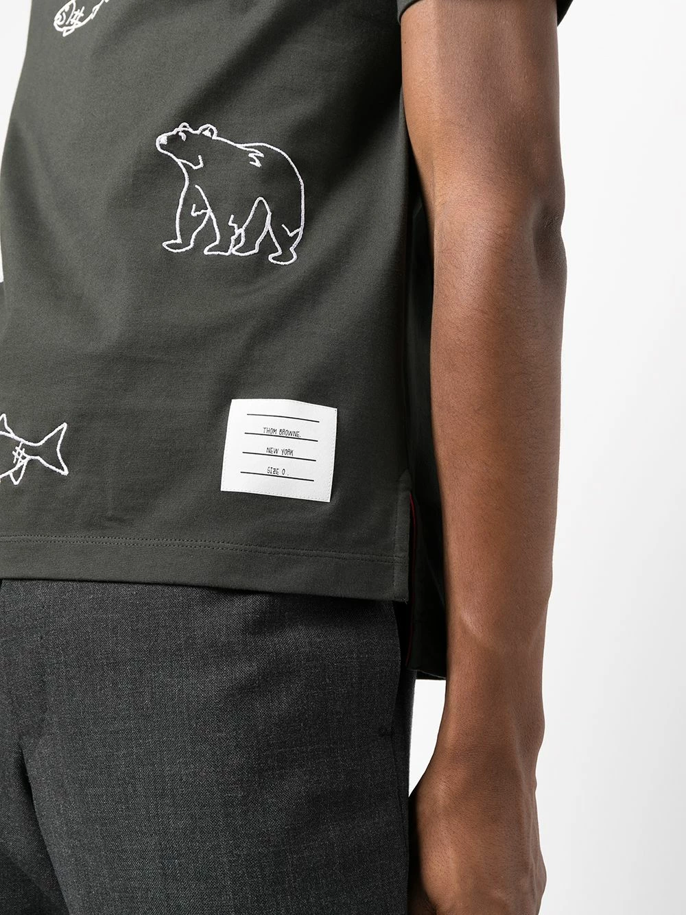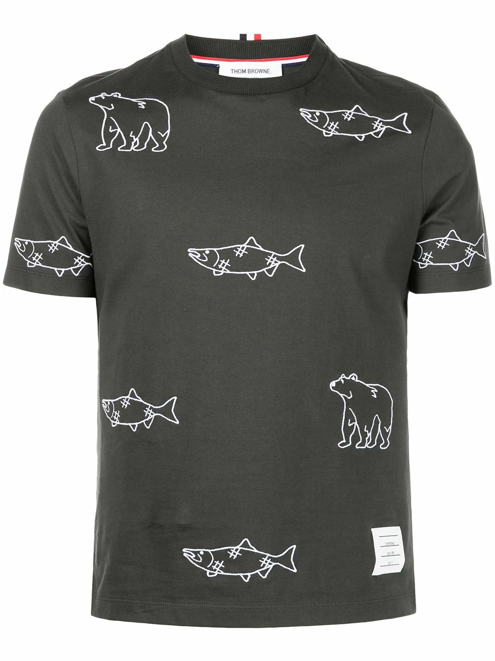 Bear and salmon motifs are embroidered onto this cotton T-shirt from Thom Browne. The short-sleeve design has a classic round neck and short-sleeve silhouette.