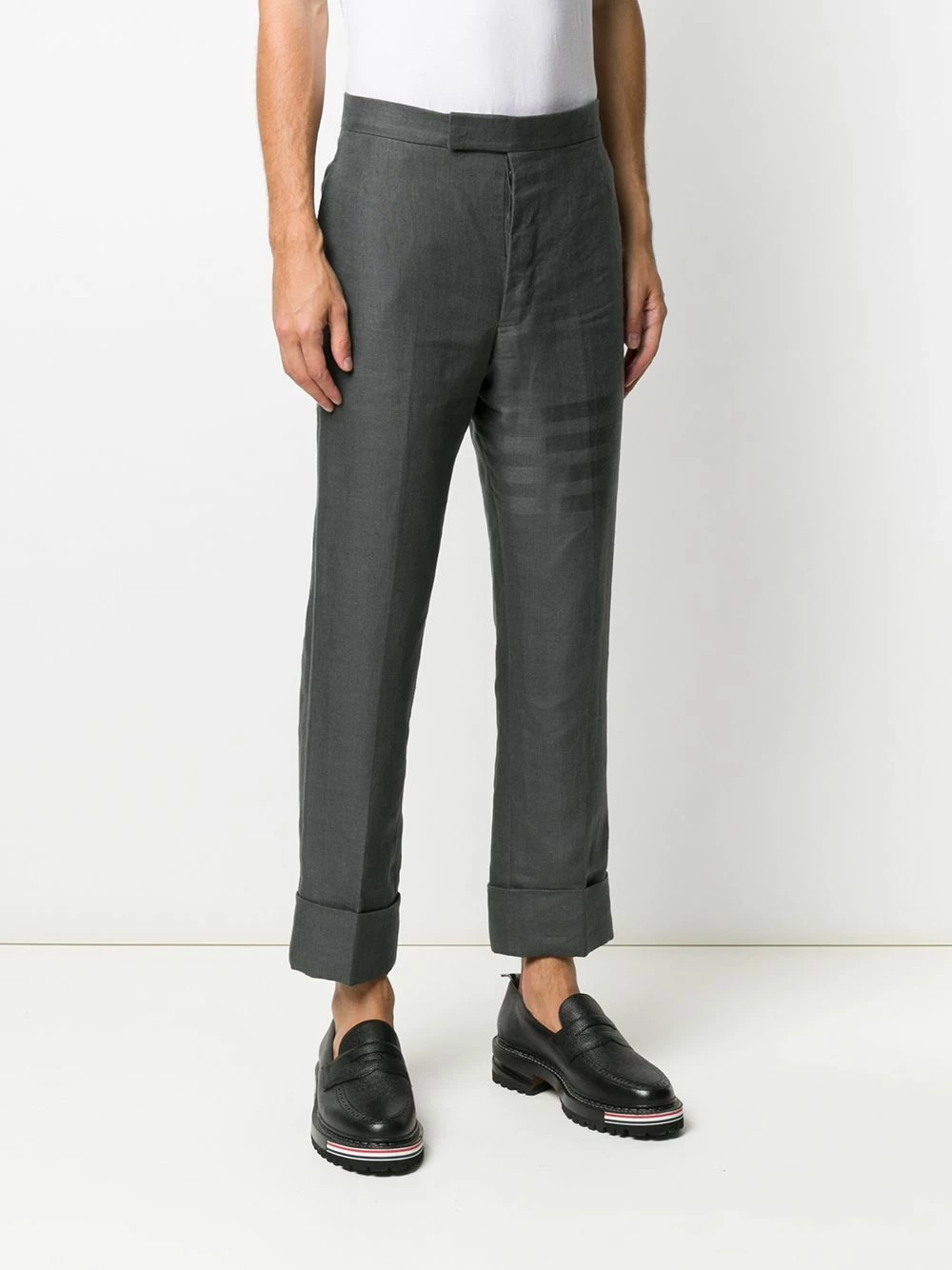 Dare to bare.. your ankles. That’s the aim of the game with these cropped Fit 1 tailored trousers from Thom Browne. Instilled with the label’s preppy spirit; they’re our new season go-to.