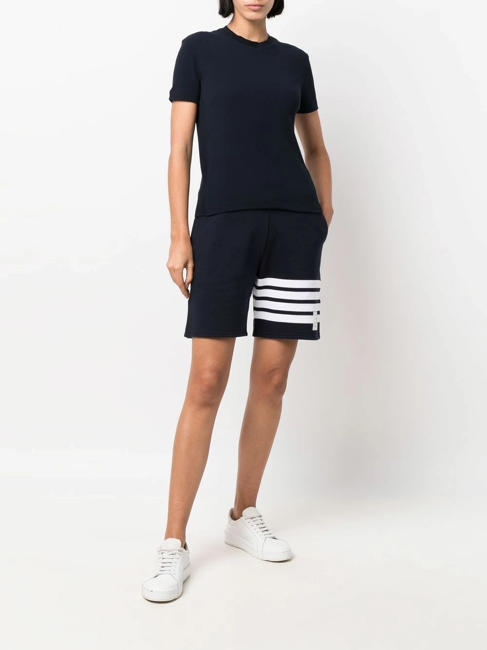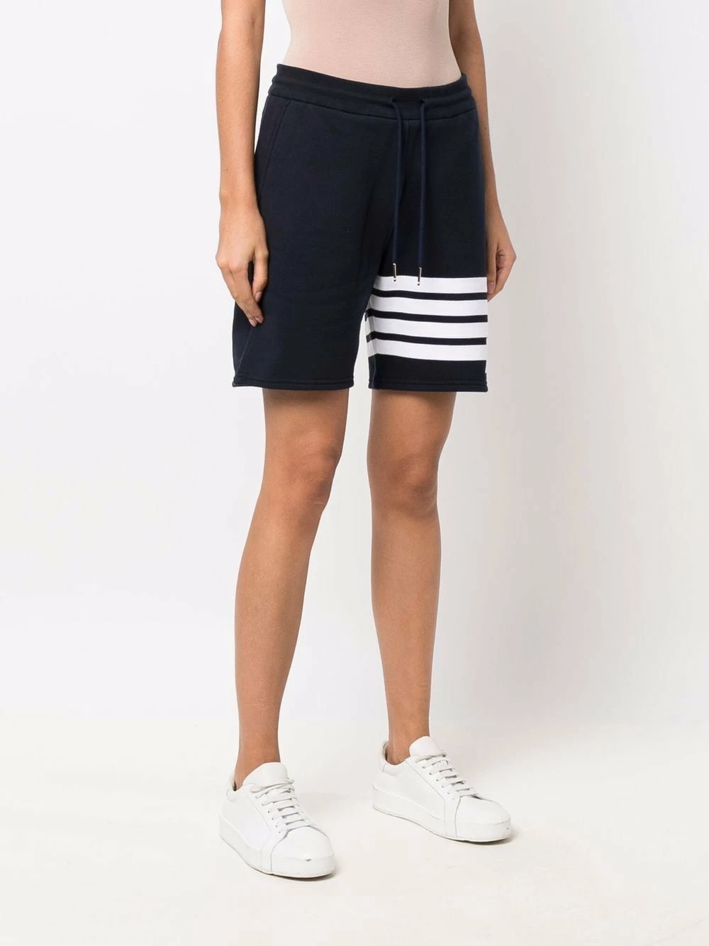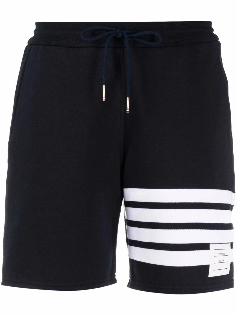 A part of Thom Browne’s AW21 collection, these track shorts celebrate two of the label’s most famed motifs. Their deep blue hue allows the iconic four-bar stripe and RWB tab to stand out for a recognisable look.