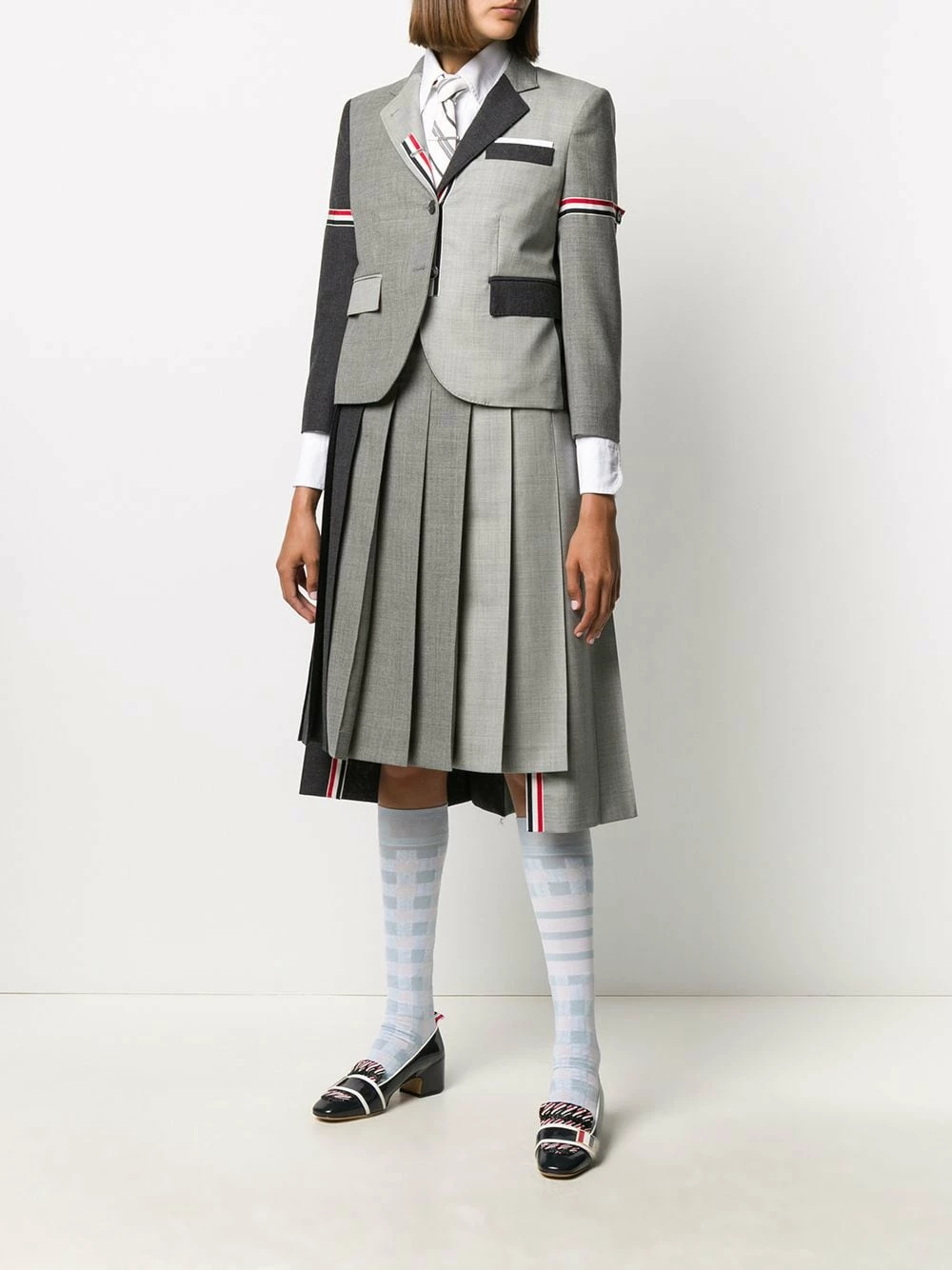 To create something new, you have to destruct and reconstruct. That’s what Thom Browne does with tailoring and this grey wool Fun-Mix panelled blazer. It strikes just the right balance of timeless and unconventional.