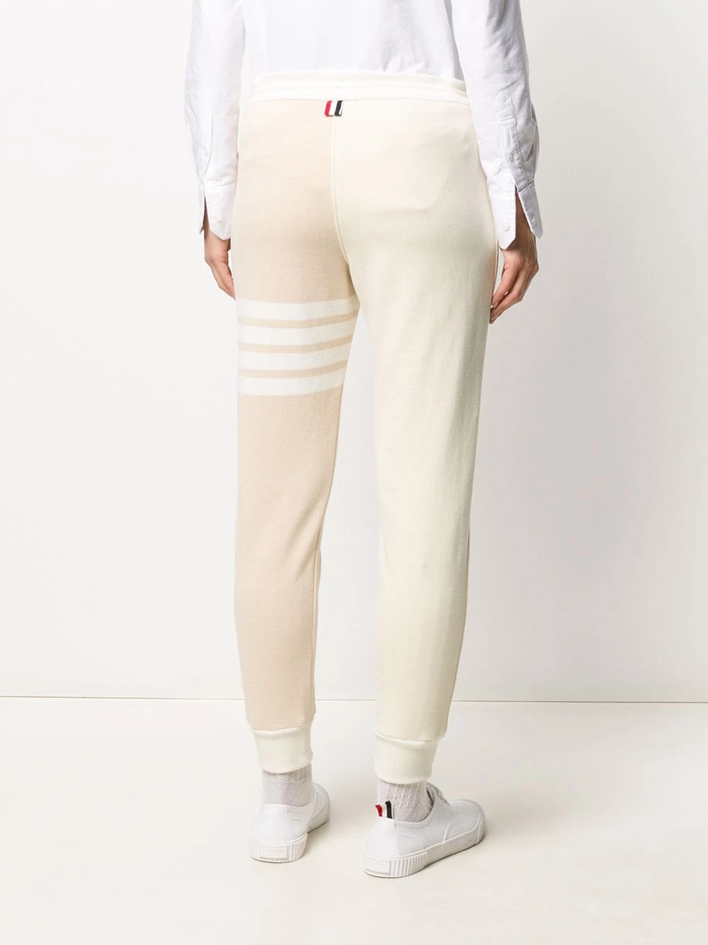 In or out of the gym, Thom Browne has you covered with this pair. In nude, these Funmix engineer 4-Bar stripe track pants are our solution to carefree dressing. We love athleisurewear. Featuring a drawstring waist, side pockets and gathered ankles.