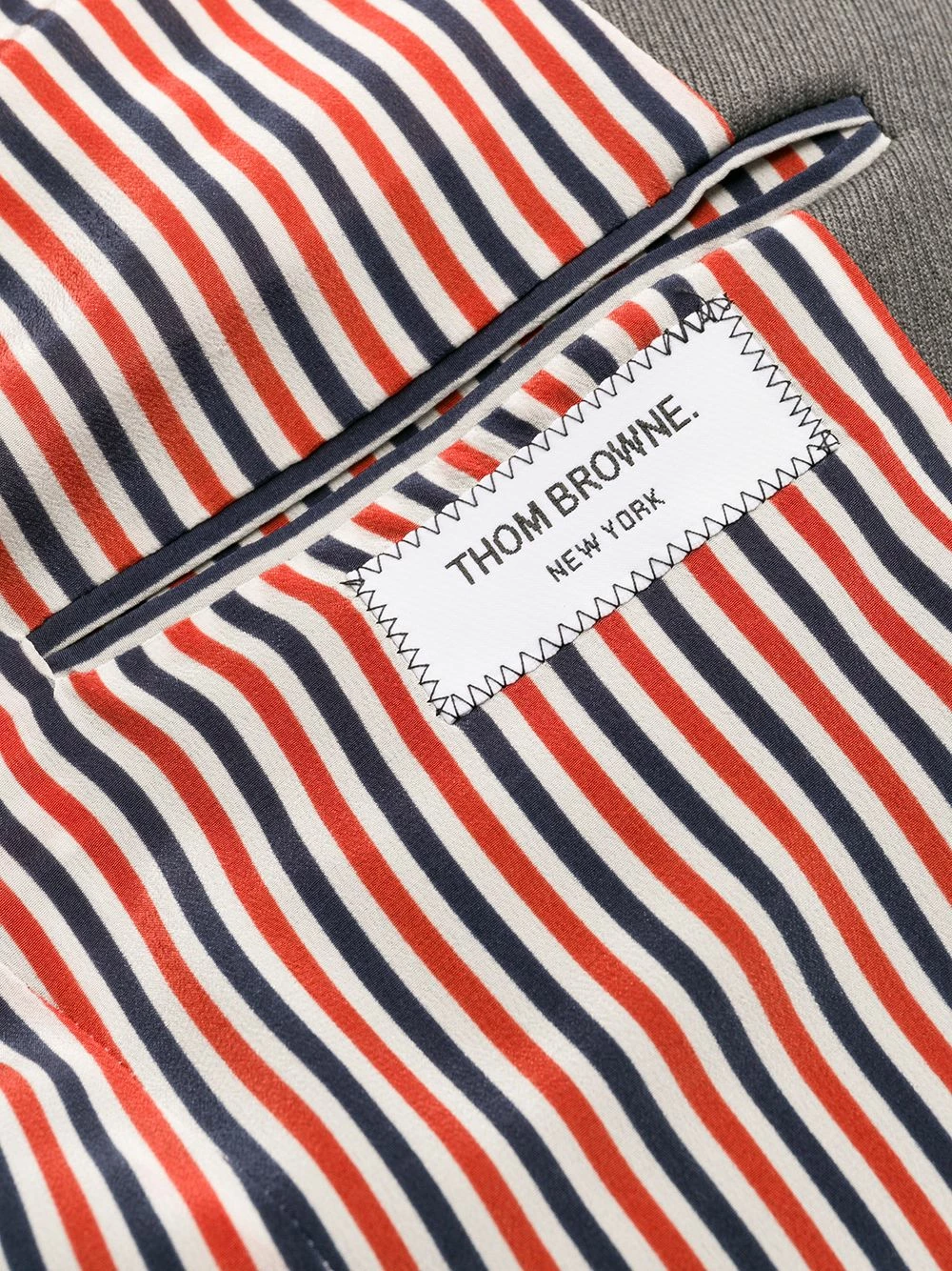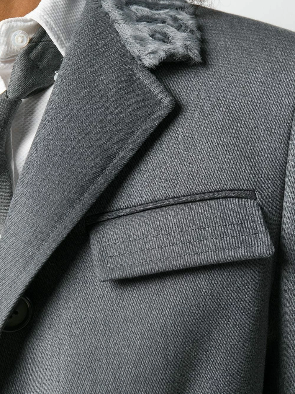 Thom Browne’s newest edit captures the immaculate craftsmanship and minimalist designs that have come to define the American label. Case in point: this grey wool Fur Collar Elongated Chesterfield from Thom Browne’s AW19 Collection. Featuring a fur collar, a concealed front fastening, a flap chest pocket, front flap pockets, long sleeves, button cuffs, a double vent to the rear and a mid-length.
