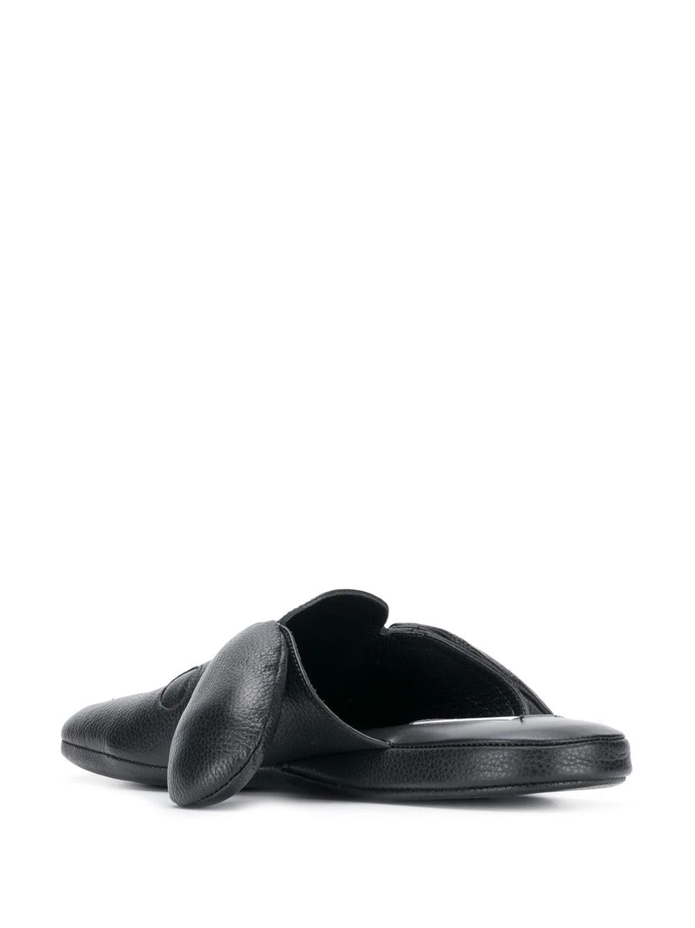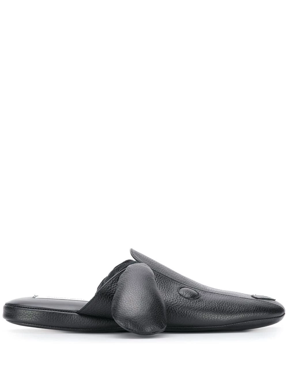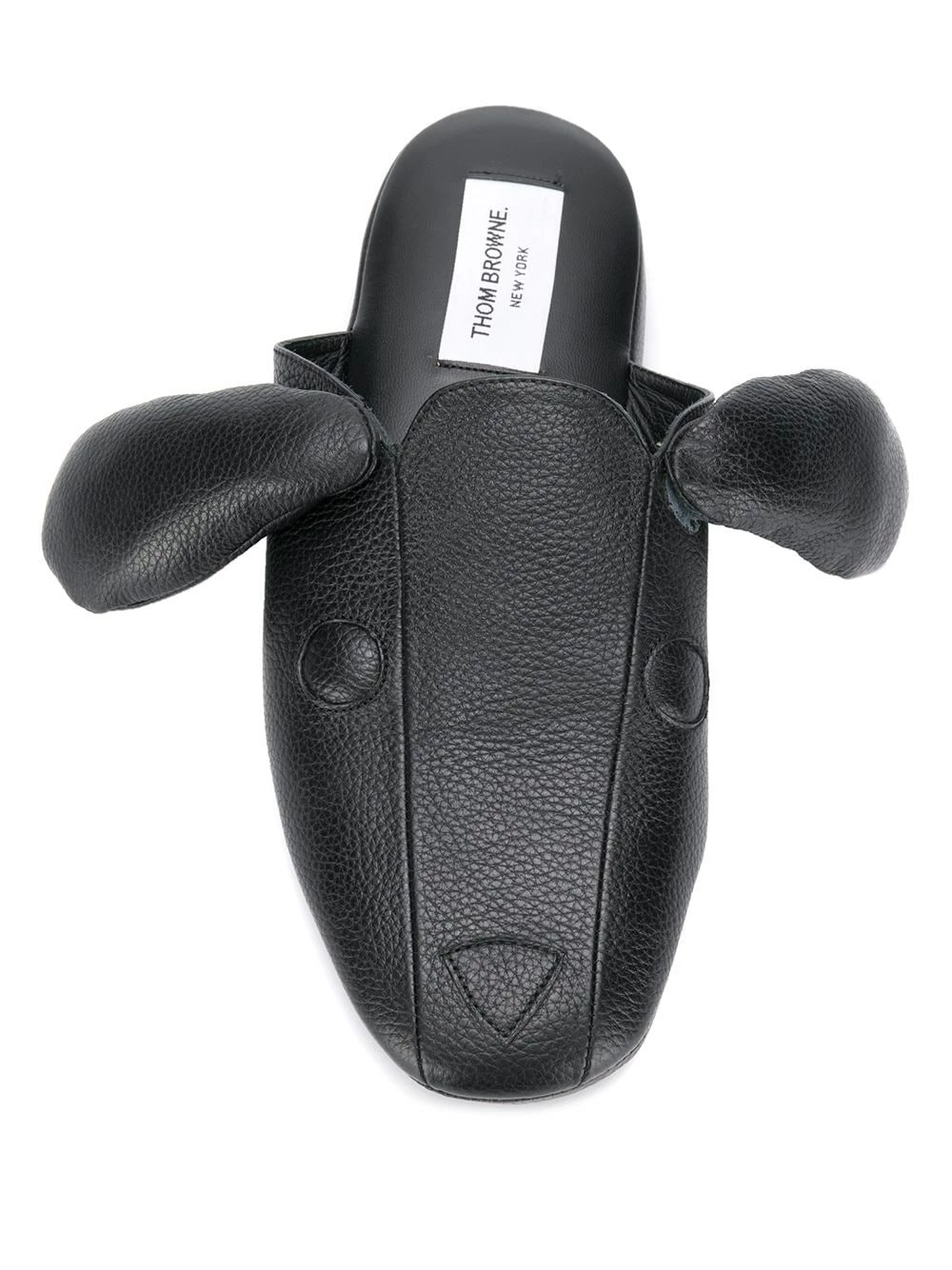 Thom Brown’s expertise in technical, tailored and luxuriously fabricated aesthetic is clearly evident in these black Goat Skin Lining Hector Slipper. Featuring a round toe, a slip-on style, a branded insole, a flat sole, a pebbled leather texture and dog ears.