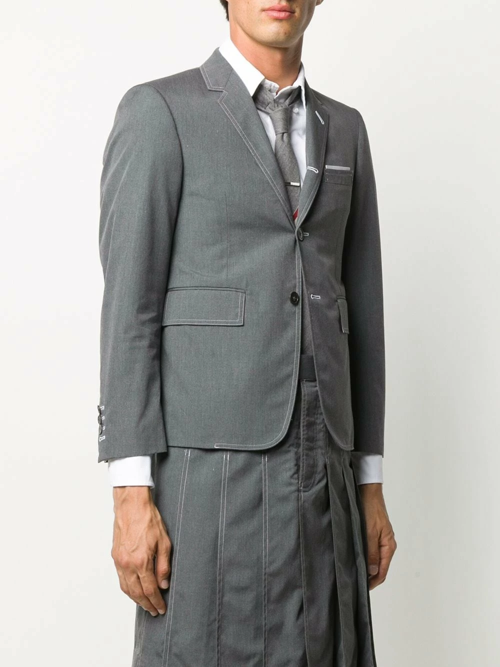 Sport quintessential British suiting in Thom Browne. Classic construction is made with a modern twist. Top notch.