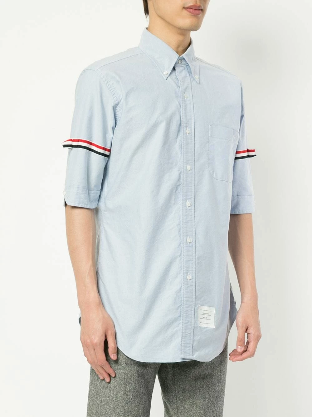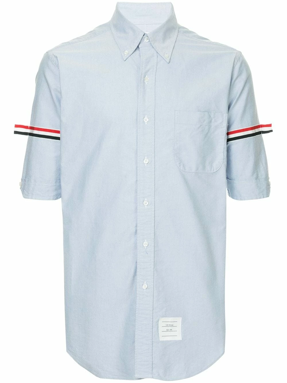 A lineup of investment pieces designed to withstand the test of time, Thom Browne’s Spring/Summer 2019 collection continues to blur the lines between refined tailoring and contemporary sportswear. Crafted from pure light blue cotton, this grosgrain armband shirt from Thom Browne features a button down pointed collar, a front button fastening, short sleeves, a chest pocket, a curved hem, signature tricolour grosgrain armbands and a Thom Browne 4-Bar tag to the front.