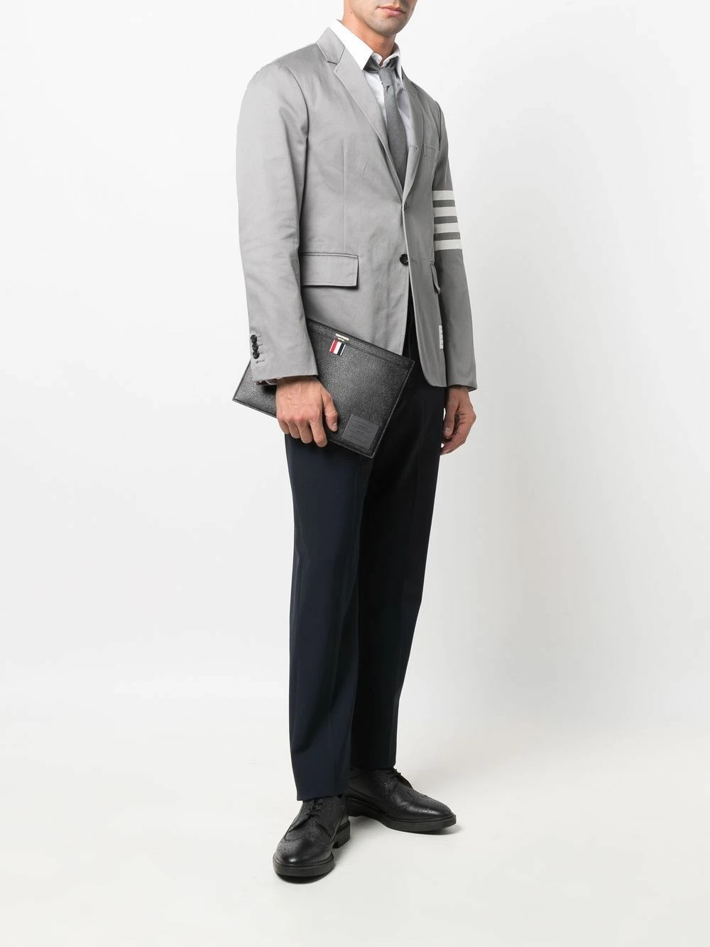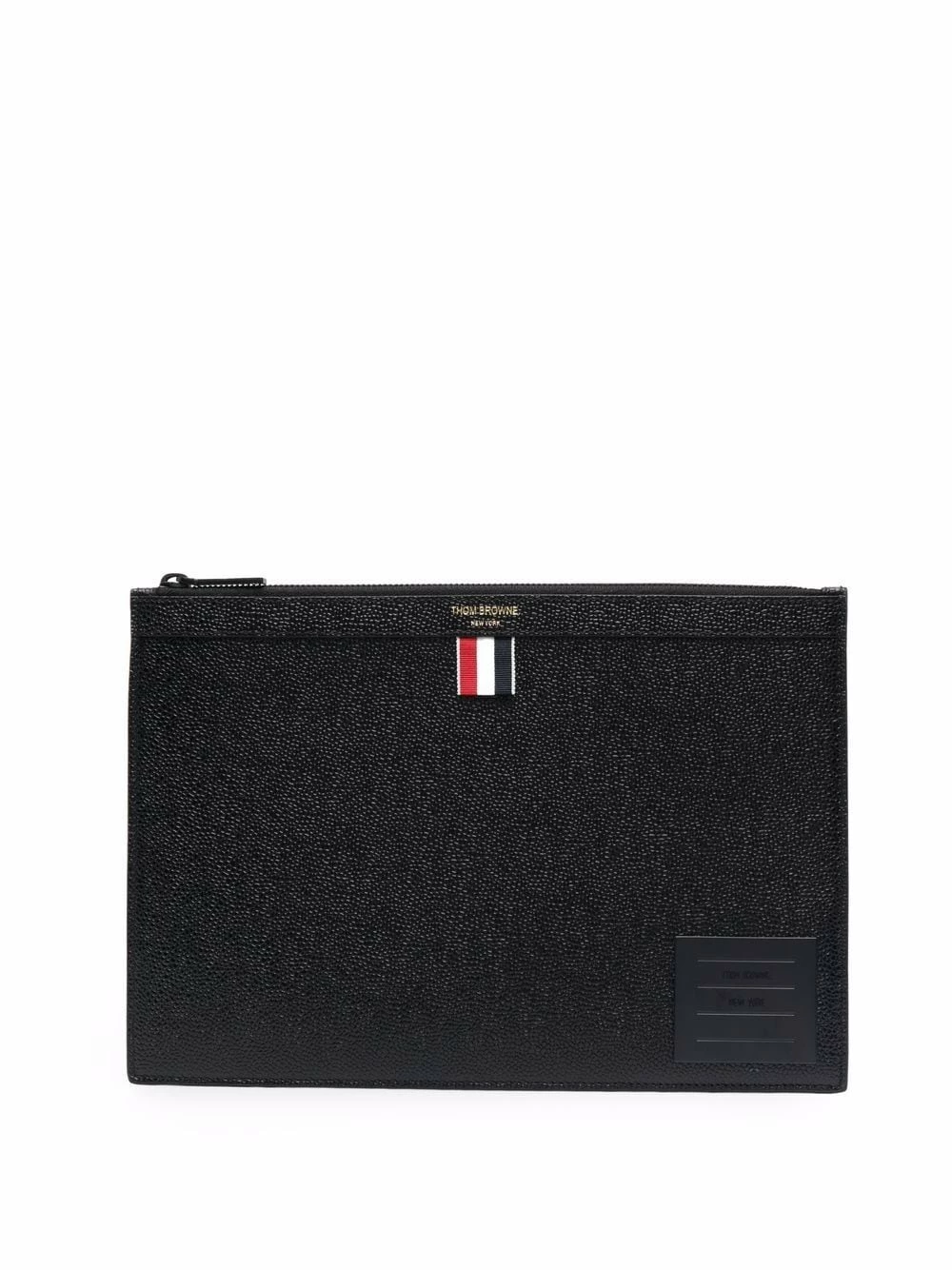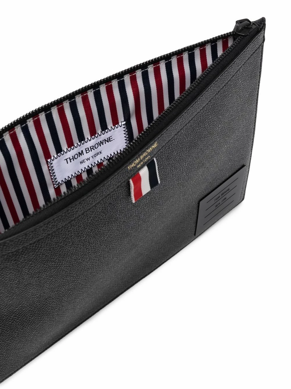 Crafted from grainy leather as a testament to Thom Browne’s expert craftsmanship, this clutch bag is adorned with the iconic grosgrain loop tab and its interior is covered with the unmistakable RWB-stripe.